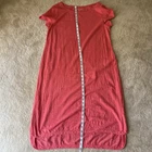 This Eileen Fisher Women's T-shirt Dress in size Large features a solid salmon color, making it perfect for a beachy or poolside look. Made from organic hemp and cotton, this knee-length dress has short cap sleeves and a round neckline for a comfortable and relaxed fit. The pullover style and A-line silhouette make it versatile for casual outings, parties, or even travel during the summer, fall, or spring seasons. A classic and colorful addition to any designer wardrobe, this dress embodies a beachy and casual vibe.