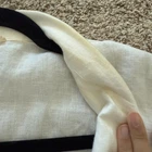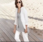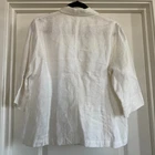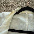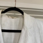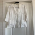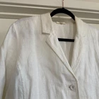 Notch Collar Blazer 3 Buttons and Patch Pockets Lightweight100% Organic Linen Brand: Eileen Fisher Size: medium Color: White Fabric: 100% linen Condition: In good preowned condition, Discoloration on the collar (photographed) could likely get treated out. No other flaws Dimensions Pit to pit Full length Tags: linen, white, beach, nautical, quiet luxury, stealth wealth, old money, summer, lightweight, casual, business casual, Flax, Love Linen,