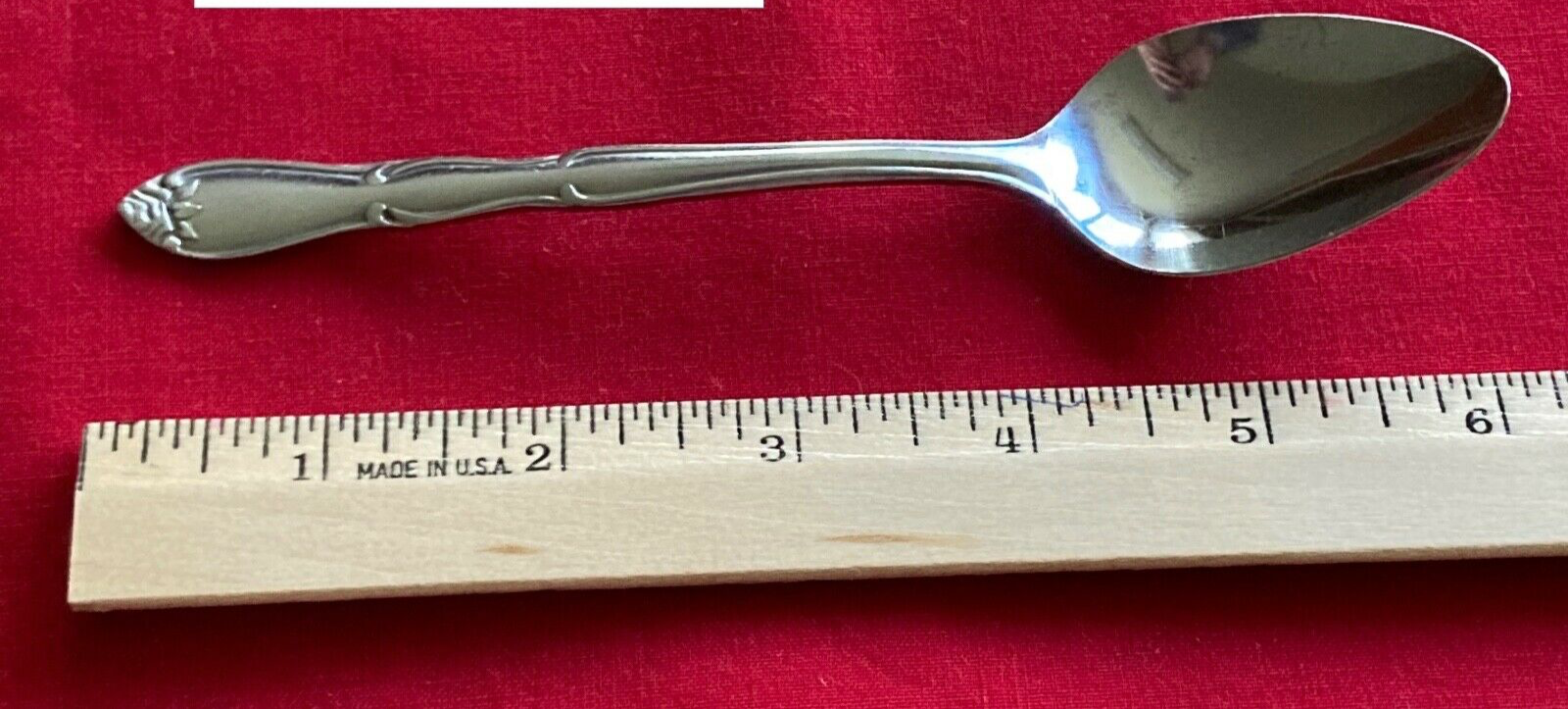 Manufacturer: Ekco Pattern: Mayflower Type: Stainless Steel Piece: Teaspoon Length: 6"