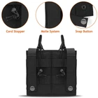 Product Description Features: 1. Double-Layer Holder New Design: New upgraded, it hold twice layer magazines, one layer to fasten rifle mags and one layer to fasten pistol mags; 2. Double compartments design keep your item in order and in reach, to keep your magazines not falling; 3. Hook & Loop fasten design, fast and easy to open the top and close. 4. Molle System: Molle webbing at the back can be attached to molle gears, including tactical vest/belt/backpack etc. 5. Package: Only 1 pouch, the other items such as magazine is not included. Specifications: Type: Tactical Molle Magazine Pouch Material: Durable Waterproof 1000D Nylon Color: Black/Khaki/Army Green Weight: 140g approx Type: Double Mag Pouch: 2+2 Mag Holder Size: 6.2*1.2*5.3inch Package Includes: 1 X Tactical Mag Pouch (Magazines are not included)