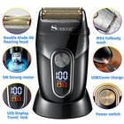 Specifications: Best for hair, beard, stubble, shaved head bump free shaving and super close shaving clean up hair and neck lines for smooth finish cord/cordless shaver shaper a great tool for an extra-close shave on the neck,face and all around the hairline 100-240V voltage,50/60Hz Cord/cordless work powerful and quiet rotary motor gold titanium hypoallergenic foil for irritation-free shaving 2 blade cutting shaving system 600mAh Lithium-ion battery LCD display, charging reminder, battery power percentage reminder contains travel lock function, press and hold the switch for 3 seconds, the machine will be locked, if unlocked, do the same operation USB Line charger model Package Included: 1* T rimmer 1* Protective cover 1* C harger 1* Cleaning brush 1* Manual INSTRUCTIONS FOR USE : 1. Men whose skin is sensitive or easily irritated by shaving, or who suffer from a skin allergy, should test one section on the leg or arm before using the shaver. 2. Remove the protective cover and turn on the unit to start shaving. Hold the shaver at a right angle to the area of your face that you want to shave and run the single shaving foil carefully along your skin. Tip: In general, we recommend that you shave against the direction of hair growth, as this is the best way to trim the hair. Pull your skin tight, with your fingers in inaccessible areas, to achieve optimum results. 3. Do not push the shaver on the skin too hard as it could cause irritation, make the shaver warm and prevent a perfect shave. 4. Please note that it takes 2 to 4 weeks for your skin to adapt to a shaver, so please do not change shaving instruments in this period of time. 5. If hair is longer than 1/32” begin by cutting the hair down first with a trimmer, then use shaver for a smooth close finish.