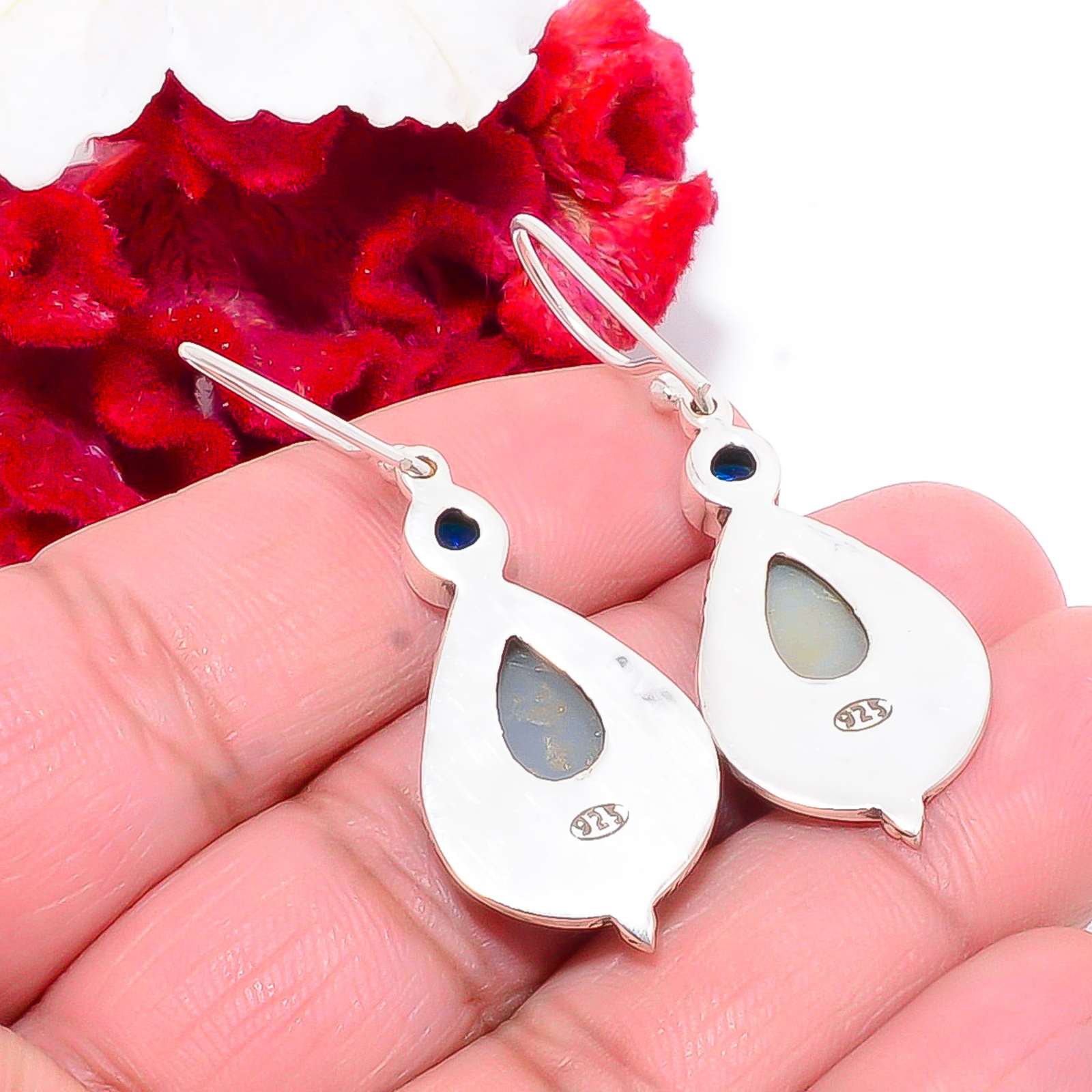 $ 8.78Electric Blue Titanium Agate Drusy Earrings with Sapphire in 925 Silver 2.34 Inch Sku8