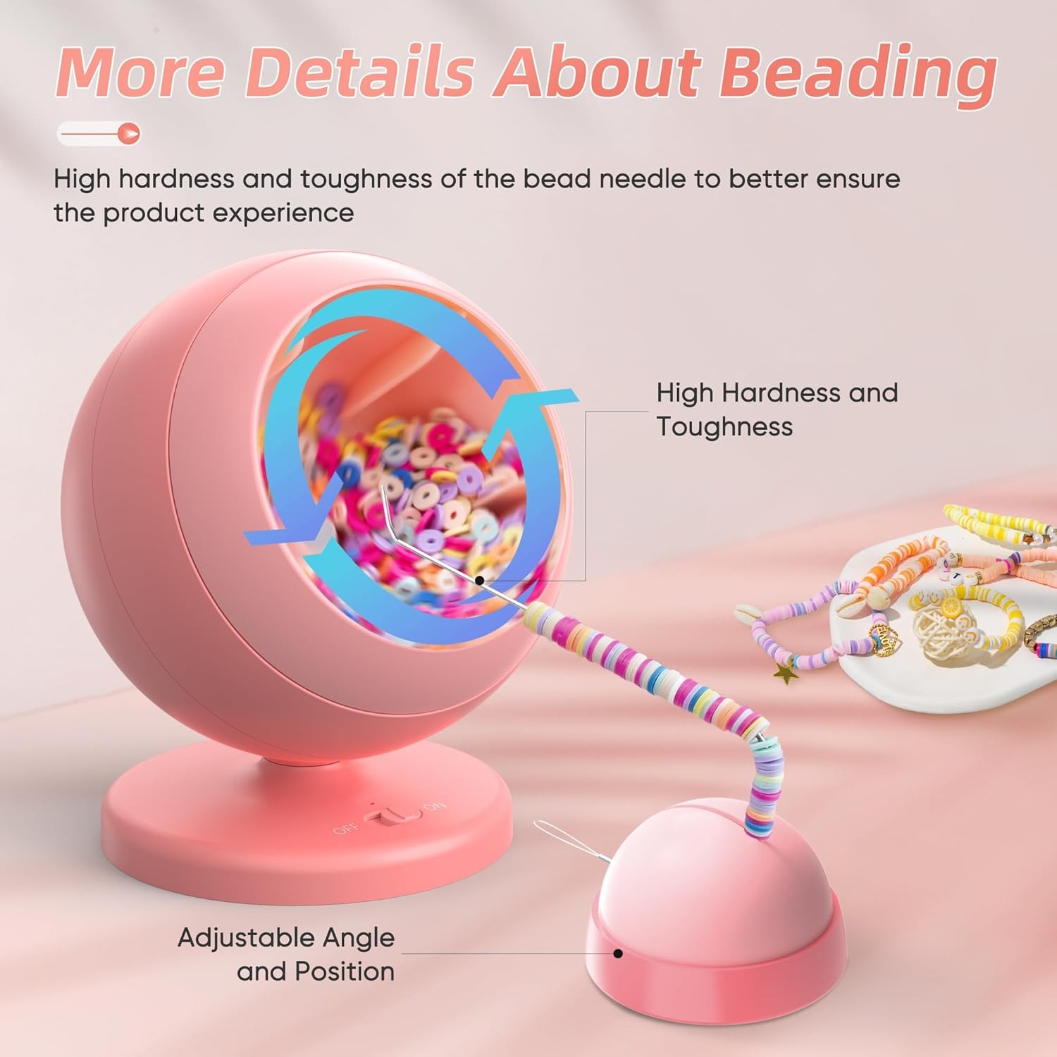 Electric Bead Spinner, Clay Bead Spinner for Jewelry Making, Bracelet Spinner and Necklace Making Machine with 2PCS Needles, DIY Set Gift(Beads Not Included) 【Fast and Efficient Beading】 The electric bead spinner is designed for flat clay beads to improve the efficiency of beading.Compared with manual production, the efficiency of bead spinning is increased by 50%. Thanks to the high motor efficiency, the bracelet will be made in less than 2 minutes 【Multi-Functional Compatibility】 Upgrade the motor, so that the ball bowl noise is low, more stable rotation. The divider bar in the bowl ensures smooth rotation and successful bead placement. The smaller bowl opening prevents the beads from flying out during use 【Beginner Friendly】 Whether you are a beginner or an experienced user, clay bead spinner can enhance your beading experience and help you create beautiful jewelry 【Easy to Use and Fun】fill the bowl with your favorite clay beads 1/3 of the way, then thread through the needle, secure it in the holder slot, activate the switch, and insert the needle into the bowl. Adjust the position of the needle until the bead slides smoothly onto the needle 【Creative Gift Ideas】 -Aenebe bead spinner is a unique gift for girls and craft lovers, making it an ideal birthday gift. Because of its lightweight and compact size, it is more convenient to use or carry, suitable for outdoor or group activities,Package List: Clay bead spinner x1, Needle base x1,U-shape needles x2, Exquisite gift box x1,Cartoon Stickers x2 Product Description High Hardness and Toughness Bead Needles Upgrade the motor, so that the ball bowl noise is low, more stable rotation. The divider bar in the bowl ensures smooth rotation and successful bead placement. The smaller bowl opening prevents the beads from flying out during use 4.3 inches x 4.5 inches x 5.6 inches. Weight: 1.01 lb Item model number BS002 Item dimensions L x W x H 4.5 x 4.3 x 5.6 inches Age Range (Description) 3+ Color Peach Pink Bead Spinner Material Metal Country of Origin China Style Modern Item Weight 1.01 pounds Theme Halloween Model Name Electric Bead Spinner Seasons All Seasons Art Craft Kit Type Beading Kit Included Components Clay bead spinner x1, Needle base x1,U-shape needles x2, Exquisite gift box x1,Cartoon Stickers x2 Special Feature Designed specifically for clay beads, hands-free operation Product Dimensions 4.5 x 4.3 x 5.6 inches