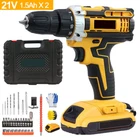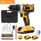 Voltage:21vPower Source:BatteryMaximum Torque:33N.MType:Drill SetAuxiliary Handle:NoMPN:dose not applyEAN:dose not applyTo Fit ::Drill wood, Steel, Cement / Electric screwdrivergtin13:dose not applyCustom Bundle:NoBattery Technology:Lithium-Ion (Li-Ion)Model:Cordless DrillSpeed:0-550/0-1850rpmPlug:US PlugCable Length:CordlessSet Includes:Battery, Battery Charger, Drill Bits, Screwdriver BitsNumber of Batteries:2PCS OR 1PCSFeatures:LightweightMotor Type:BrushedColor:YellowCharging Time:1h-2hUPC:dose not applyBrand:Unbranded