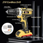 HomeElectric Cordless Drill 21V Adjustable Drill Driver Set Battery Home US Stock