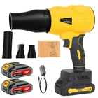 Feather Powerful turbine wind, efficient yard cleaning: Equipped with a high-speed brushless motor and aluminum alloy blades, the speed is up to 60,000 RPM, and the super-strong airflow of 50m/s (maximum thrust 650g) is ejected to easily blow away fallen leaves, dust, and debris. Comes with 3 different styles of nozzles, taking into account both narrow corners and large-area yard cleaning, say goodbye to the trouble of bending over to rake leaves. Dual large-capacity batteries + fast charging, long-lasting battery life: Standard 2x 21V/4000mAh lithium batteries (compatible with 20,000mAh capacity), a single battery life of 30 minutes, dual batteries can work continuously for up to 60 minutes. With a fast charger, the charging efficiency is increased by 30%, temperature control protection ensures safety, and the red and green lights indicate the charging status, which makes it easier to charge and use. Ultra-lightweight design, effortless one-handed operation: The whole machine weighs only 1.12 pounds (about 0.5kg), and the ergonomic handle design makes it easy to operate with one hand, and it will not be tiring to use for a long time. Whether it is a roof, terrace or garden corner, it can be cleaned flexibly, and women or the elderly can also control it easily. Cordless and portable, stepless speed regulation: Get rid of the constraints of wires, operate freely, and cover a wider range. The motor has built-in overheat protection, and it does not heat up when running at full load; the battery has intelligent temperature control to prevent overcharging and over-discharging, and extend its life. The wind force can be adjusted freely, and the wind speed can be adjusted according to needs by pressing. Light press for small, heavy press for large. Package Contents: 1 x Jet Dryer (Main Unit) 2 x Batteries(For Makita BL18,Excluding G series) 1 x Charger 1 x Set of Nozzle Accessories We would like to clarify the product image. The photo shows the machine with one battery installed, alongside a display of the two included batteries. Please note that this is for demonstration purposes only. The total number of batteries included in your purchase is two. The one installed in the machine and the two shown separately are not additive; they are the same two batteries.