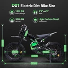 [๐๐ซ๐๐ฆ๐ข๐ฎ๐ฆ ๐๐๐ซ๐๐จ๐ซ๐ฆ๐๐ง๐๐ ๐๐๐๐๐ ๐๐๐๐ค ๐๐จ๐ฐ๐๐ซ] The D01 electric dirt bike is equipped with a peak 4000W brushless motor, unleashing exhilarating power that propels it to a 40mph (64km/h) and tackling 45ยฐ slopes effortlessly. Riding the ebike isn't just cyclingโit's taming a roaring beast, tearing through the wild with wind howling in your wake: fearless, unyielding, utterly unstoppable. ใ๐๐๐ ๐๐๐๐ก ๐๐๐ฆ๐จ๐ฏ๐๐๐ฅ๐ ๐๐๐ญ๐ญ๐๐ซ๐ฒ ๐ฐ๐ข๐ญ๐ก ๐๐๐๐ข๐ฅ๐๐ฌ ๐๐๐ฑ ๐๐๐ง๐ ๐ใPowered by a 48V 32Ah high-capacity removable battery, this electric motorcycle delivers an impressive max range of 70 miles on a single charge (4.5A Fast Charger: 6-8 Hours Full Charge)-enough to handle daily commutes, weekend getaways, or even cross-town adventures without the stress of range anxiety. ใ๐๐ข๐ซ๐ญ ๐๐ข๐ค๐ ๐๐ข๐ซ๐๐ฌ & ๐๐ฒ๐๐ซ๐๐ฎ๐ฅ๐ข๐ ๐๐ซ๐๐ค๐๐ฌใThe electric bike features 70/100-19 knobby fat dirt tires specialized for motocross bikes, delivering exceptional traction and stability on all terrain. The braking system adopts 180mm dual-disc hydraulic brakes with 4-piston calipers, delivering instant, linear braking force even at high speeds or on slippery surfaces, effectively shortening braking distance for maximum safety. ใ๐๐ฅ๐ฅ-๐๐จ๐ฎ๐ง๐ ๐๐ข๐ฌ๐ข๐๐ข๐ฅ๐ข๐ญ๐ฒ & ๐๐ฆ๐๐ซ๐ญ ๐๐ข๐ฌ๐ฉ๐ฅ๐๐ฒ ๐๐ฒ๐ฌ๐ญ๐๐ฆใThe adults electric bicycle features a comprehensive riding support setup for safety and convenience. Intelligent LCD dashboard clearly displays speed, battery level, etc, and supports quick unlocking via NFC card. It also has bright LED front headlights, rear taillights and turn signals to keep you visible in low light or bad weather, keeping you informed and seen whether riding at night or in busy areas. ใ๐๐ซ๐จ๐๐๐ฌ๐ฌ๐ข๐จ๐ง๐๐ฅ-๐๐ซ๐๐๐ ๐๐ฎ๐๐ฅ ๐๐ฎ๐ฌ๐ฉ๐๐ง๐ฌ๐ข๐จ๐งใThe ebike features a dual suspension system paired with a thru-axle front fork, delivering strong rigidity and reliable locking force.It prevents wheel deviation during hard cornering or impacts, ensuring precise tracking and direct control. The dual suspension absorbs shocks from bumps and uneven terrain in real time, bringing you an ultra-smooth and comfortable riding experience on any road condition. ใ๐๐ฎ๐ฉ๐๐ซ๐ข๐จ๐ซ ๐๐-๐ฆ๐จ๐ง๐ญ๐ก ๐๐๐ซ๐ซ๐๐ง๐ญ๐ฒ & ๐๐/๐ ๐๐ง๐ฅ๐ข๐ง๐ ๐๐ฎ๐ฉ๐ฉ๐จ๐ซ๐ญใThe electric dirt bike comes with a 12-month quality support. To ensure smooth after-sales service, please retain the original packaging. Whether you have inquiries about use, need help with issues, or require after-sales guidance, we're 24/7 online to respond promptly, so you can ride with total peace of mind. Package Included: Ebike*1, Battery*1, Charger*1, Installation Tools*1, User Manual*1, NFC Cards*2, Remote Control*2 Note: Our products have been certified under UL2849 safety standards.