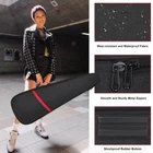 Made of durable scratch resistant fabric, with sturdy double zipper, anti-slip rubber pad on the bottom to prevent abrasion to the fabric. Soft padded gig bag for electric guitars, great to keep the dust, water and dirt off your guitar. Unique triangle curve shape and red band design adding character to the dull black electric guitar gig bag. Fits for 39 inch Electric Guitars. Lightweight electric guitar backpack has a neck holding strap to keep the guitar in place. Thick padding shell is good protection to keep the musical instrument from light-travel nicks, scuffs and scratches. Side grip handle, back hanger loop and dual adjustable padded shoulder straps, provide multiple convenient ways to get the guitar from place to place. As electric guitar carrying case or guitar backpack to transport your guitar back and forth to gigs, travel, home, church, lessons, gigs, concert, music school, rehearsals, studio, club, musical instrument shop. Large zippered pouch hidden under red stripe can hold guitar picks, cables, strings, music book, notebook, phone, sheet music, guitar straps, tuners, capos and other musical accessories. Portable electric guitar bag is a perfect gift for guitar beginner, students, guitarist. Such as birthday gifts, back to school gifts, party gifts, surprise gifts. TIPS: THIS GIG BAG CAN'T HOLD ELECTRIC BASS GUITAR.