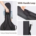 Lightweight Portable Gig Bag for Electric Guitar: bag dimension 40.9”x14.9”x2.7”, upper bout 11.8”, lower bout 14.9”, fits for 40 in Electric Guitars. NOTE: THIS GIG BAG IS TOO SHORT FOR AN ELECTRIC BASS GUITAR. Please select from electric bass guitar bags in our store if you need. 6mm Padding Throughout: This padded electric guitar bag focus on basic storage and carrying need, defending your gear against in-home accidents as well as light-travel nicks, scuffs and scratches, also the strong zipper and rubber shockproof base protect the guitar well. Reflective Bands & Guitar Neck Strap: Reflective bands sewed above the pocket protect your beloved guitar from unexpected bumps and scratch in dark surroundings. guitar neck strap secures guitar in place, reinforced interior cloth at headstock resist daily wear and makes this bag last longer. Large Exterior Pouch: big enough to hold A4 and US letter size music sheets books, tablet, smartphone as well as small stuff such as tuners, strings, cables, picks, guitar straps. Dual Adjustable Backpack Straps and Side Carry Handle: providing multiple ways of carrying. Back hanger loop can be hung on the wall for decoration when not in use.