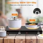 Electric Hot Plate for Cooking, Infrared Double infrared hot plate Product Details Material: Ceramic Glass Special Feature: Electric Brand: Vayepro Heating Elements: 2 Product Dimensions: 12"D x 20"W x 3.8"H Wattage: 1800 watts Controls Type: Knob Voltage: 120 Volts Burner type: Sealed Included Components: 2 x Burner Power Source: AC Item Weight: 6.95 Pounds Item Weight: 6.95 pounds Country of Origin: China MULTI-FUNCTIONAL: Perfect solution for frying, stir-frying, and slow cooking, it can also be used for Teppanyaki and barbeque with a barbeque plate and rack (not included). Comes with 30-day return and 18-month free replacement policies. COMPATIBLE WITH ALL COOKWARE:Can accommodate cookware as large as 7.1'' in diameter and as heavy as 22 lbs. Different than an induction cooker, the infrared burner can be used with any pan-shaped cookware made of aluminum, stainless steel, ceramic or glass (e.g., frying pans, woks and stovetop teapots). LIGHT WEIGHT: The compact designs means the burner consumes little space in your busy kitchen, making it a perfect backup solution to cover a big party. The body is built with stainless steel for frequent and heavy use. Thus, it is an ideal choice in many places -- dorms, offices, campsites, RVs and home. FAST HEATING AND HIGH TEMPERATURES: With 120V/1800W power supply, our vertical heating technology lets the core finish heating in just few seconds. Heat is distributed evenly and efficiently through infrared radiation, to achieve desired cooking temperatures. Please do not touch the burner body when in use. SAFE & EFFICIENT: The burner cycles on and off to maintain the desired temperature automatically. It is equipped with thermal fuse for overheating protection. Other advantages include: voltage regulator, flameless operation, no carbon monoxide, no radiation and no stovetop required. It is safe and saves 30% electricity compared with traditional induction cookers. Note: Please cover your cookware with a lid when it is used to boil water.