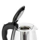 Introductions: The HD-1861-A 110V 1200W 1.8L Electric Glass Kettle is the perfect blend of elegance and functionality. Not only is this kettle a beautiful addition to any kitchen countertop, but it also boils water efficiently, saving time and energy over the use of conventional stovetop kettles. Their unique, modern, and stylish design looks great on any counter top and comes in 7 eye-catching colors. A halo of LED lights beautifully illuminates the pot when it's in use, so it's not only practical, but very attractive to look at. Large pouring spout with mesh filter for perfect, spill proof pours. In a matter of minutes, hot water will be ready to use for instant coffee, tea, hot cereal, instant macaroni, soup, or oatmeal. Features: 1. Made of High-grade stainless steel & high quality borosilicate glass & bpa-free plastic material 2. 360°rotation base 3. 7 colors LED light change automatically 4. Auto shut-off,boil dry and overheat protection 5. Ergonomic handle 6. Easy to open lid 7.With filter, can filter tea, etc. Specifications: 1. Brand: ZOKOP 2. Model: HD-1861-A 3. Type: Electric Glass Kettle 4. Capacity: 1.8L 5. Material: High-Grade Stainless Steel & High Quality Borosilicate Glass & BPA-Free Plastic 6. Voltage: 110V,50-60Hz 7. Power: 1200W 8. Plug Type: US Standard 9. Thermostat: Double Metal Temperature Control 10. Power Cord: Full Copper 3*0.75*100cm(Revealing Part) CE Certification 11. Heating Elements: Heating Plate 304 12. LED Illuminated Color: Colorful 13. Dimensions: (9.1 x 9.1 x 9.5)" / (23 x 23 x 24)cm (L x W x H) 14. Weight: 3.31lbs / 1.5kg Package Includes: 1 x Electric Glass Kettle 1 x Manual