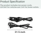 Electric Lunch Box Power Cord Set This power cord set is specially designed for electric lunch boxes, providing versatile charging solutions for different scenarios. The package includes two high-quality power cords: one 12V/24V car power cord and one 110V socket power cord, catering to your diverse needs. The 12V/24V car power cord is perfect for on-the-go use. It connects to the flat bottom interface of your electric lunch box, allowing you to heat your meals conveniently while driving. Whether you're commuting, traveling, or on a road trip, this cord ensures your lunch is ready to enjoy whenever you need it. The 110V socket power cord is ideal for indoor use. It is designed to connect to the V-shaped interface of your electric lunch box, making it easy to plug into standard wall sockets at home, in the office, or elsewhere. This gives you the flexibility to use your electric lunch box in various indoor settings. Compatibility Note: To ensure a proper fit, please confirm the interface type of your electric lunch box with the product images before purchasing. You can also select based on the brands provided in the product images to compatibility. This way, you can be confident that our power cord set will work seamlessly with your electric lunch box. With this power cord set, you'll never have to worry about being unable to power your electric lunch box. It offers convenience and flexibility, making it an essential accessory for your electric lunch box. Order now and enjoy the convenience of having your meals heated wherever you are! NOTE: Please check the product picture carefully before purchase, and compare with your old power cord to see if it is compatible with your electric lunch box COMPATIBILITY : Compatible with most four-socket electric lunchboxes, but some brands may require verification.Before purchasing, please double check the shape of your bento box's power connection to ensure that your bento box's flat bottom connector connects to an on-board (12/24 V) power cord and the V-shaped connector connects to a 110V outlet power cord to ensure seamless compatibility with our products Heated Lunch box power supply: This special power cord is designed for electric lunchboxes and ensures a reliable power supply. Suitable for both 12 V-24 V car sockets and standard 110 V domestic sockets, it's a versatile solution for your meals on the go or at home PRODUCT DETAILS:The package includes two 32-inch power cords for flexibility in adapting to a variety of power sources. Whether you're on the go or at home, we have a complete power solution for you EFFICIENT HEATING: Our power cords support up to 100 W of power, ensuring that your electric lunchbox heats up quickly and efficiently. You can prepare meals faster and enjoy your lunchtime