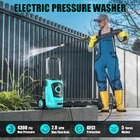 【POWERFUL HIGH PRESSURE WASHER】Generating up to 4300 pounds per square inch (PSI) of pressure with a flow rate of 2.8 gallons per minute (GPM), our electric power washer provide efficient and thorough cleaning a larger area in a shorter time. Efficient removal of multi year grime. 【4 DIFFERENT NOZZLES &FOAM CANNON】electric pressure washer with 4 quick connection nozzles(0°,15°,25°and 40°)0°delivers super pressure for concrete and bric with hard surface. 15° delivers high pressure for cleaning direways & hard surfaces. 25° tip delivers medium pressure for decks & wooden surfaces. 40° tip delivers low pressure for vehicles & windows. Soap tank can achieve foaming effect in an instant. 【UPGRADED HIGH PRESSURE HOSES】We have upgraded the high pressure hoses. New developed material to prevent kink when you wash for extra distance requirement, easy management, and roll-up. TIPS: Please lay flat to full length before using it, then it will be moved and store very easily. 【3 WATER-SUCKING WAYS】The electric high pressure washer can choose bucket self-priming water or pool self-priming. At the same time, you can also connect faucet self-priming. (connect faucet not included) 【UPGRADED DESIGN DETAILS】This pressure washer attaches a 35-foot power cord with inline GFCI for use.It helps you control and check the power using. In addition, this electric pressure washer adopts metal spiral interface design to prevent water leakage and we have also upgraded the handle to make it be more humane. 【PROFESSIONAL AFTER-SALES SERVICE】Our customer support team is available 24/7 to address any questions or concerns you may have within 24 hours.