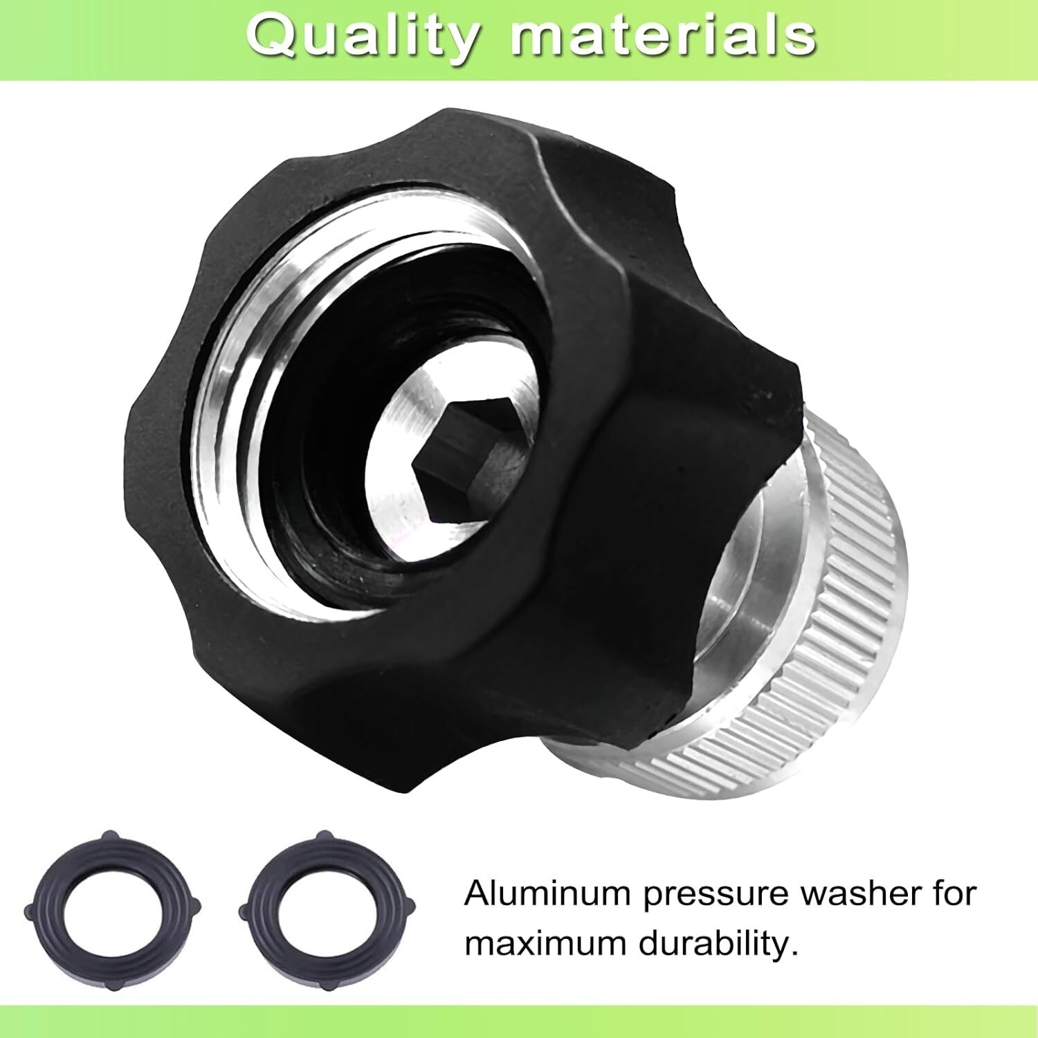 Universal Adapter: 3/4” Garden hose connection adaptor. Made of: Aluminum pressure washer for maximum durability. Built-in Filter: The filter can prevent impurities from entering the electric cleaning pump. Leak-proof: Advanced technology to ensure the high precision of thread and no leaks.