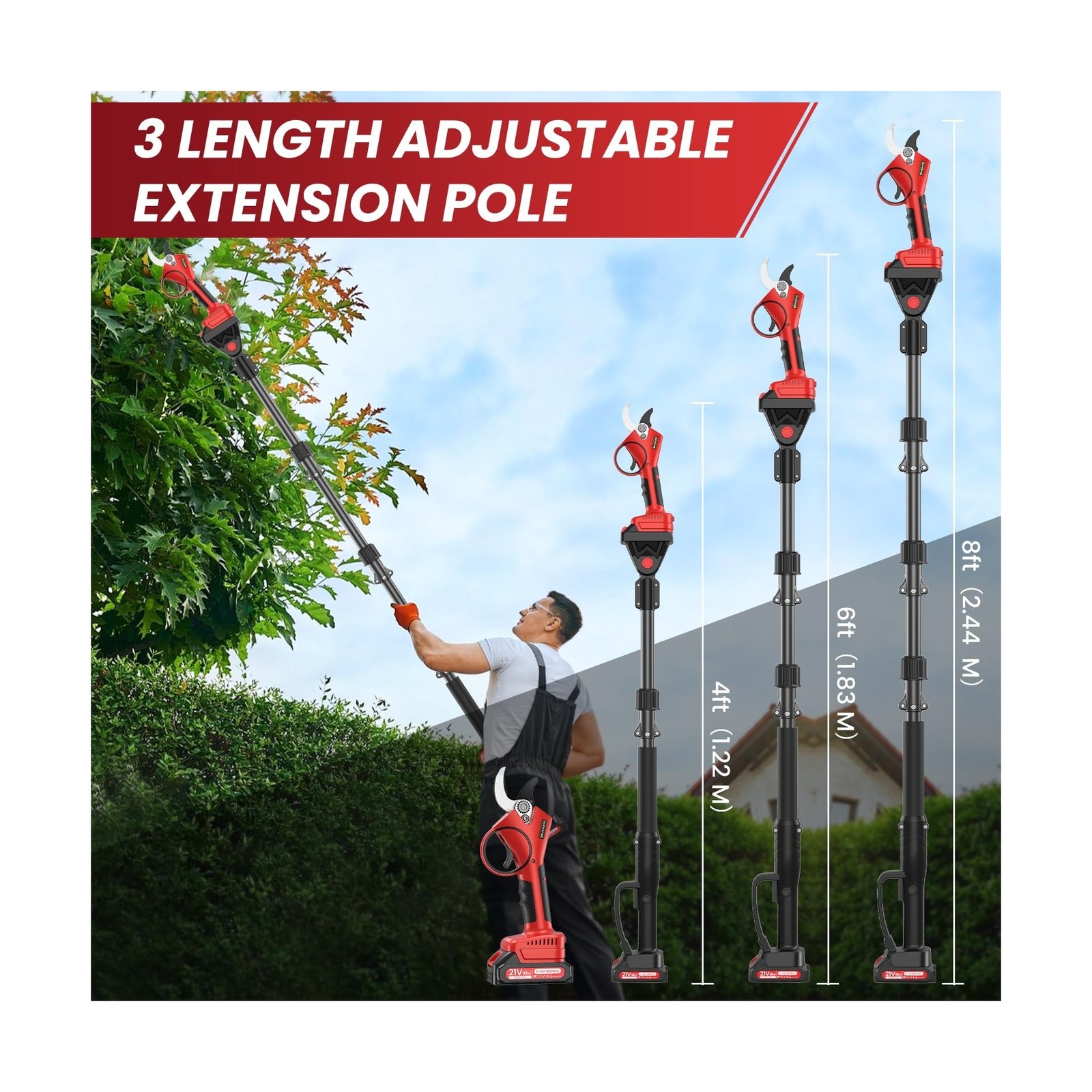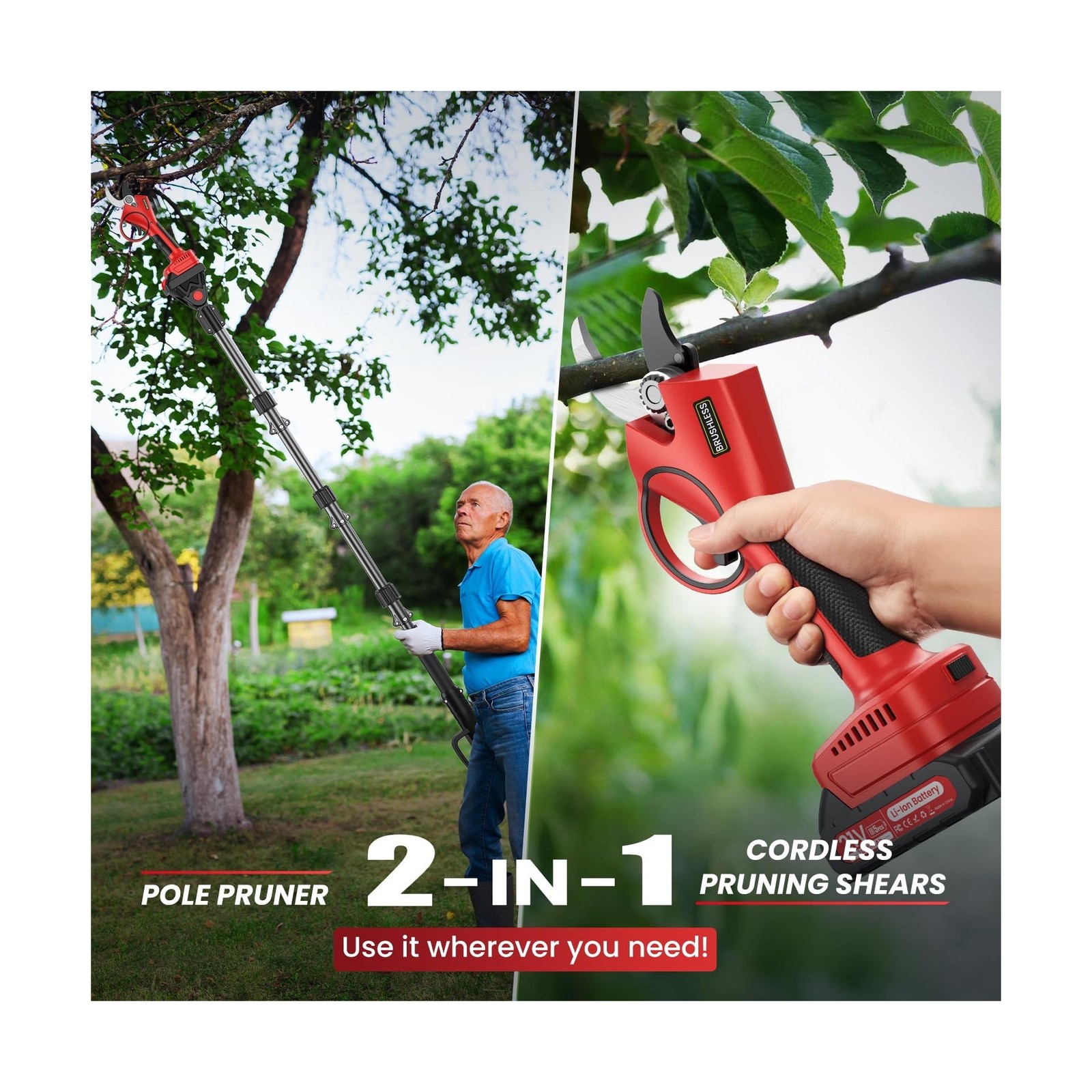 Electric Pruning Shears with Pole, 2-in-1 Cordless Pruning Shears 1.6" with SK7 Blade,8FT Reach,800W Brushless Motor,2 x 21V 2000 mAh Batteries,6–10Hs,Tree Branch Cutter for Gardening Pruning Description Features: Must-Have Gardening Tool8 FT Pole FreedomConquer towering branches without a ladder! Save time and effort with our electric pruning shears, whose pole smoothly extends up to 8 feet and swivels 180 for angled cuts. From a firm foothold, you can prune branches in apple trees, dense shrubs, or any orchard or garden. Our electric pruning shears meet all your daily needs. Whether you're a gardening enthusiast, a DIY enthusiast, or a professional gardener, they've got you covered. Lightweight, sharp, and easy to carry. 800W Brushless Monster Cuts 1.6-inch Branches in SecondsOur cordless pruning shears feature an 800W high-power brushless motor that rivals the power of a corded battery saw, with 2-3 times the run time and quieter operation. The brushless motor delivers 200% more power and uses 50% less energy, allowing you to do more with less effort. Garden maintenance is no longer a chore. Easily cuts through 1.6-inch hardwoods like oak, maple, and rose bushes without getting stuck. Long-Lasting 2000 mAh Batteries - 10 Hours of Non-Stop PruningOur mini cordless electric pruning shears with pole uses two high-capacity 2000 mAh lithium-ion batteries, which provide 6-10 hours of runtime (standard batteries provide 2-4 hours). With two batteries, you never have to worry about the saw's battery life again. You can charge while you work. SK7 Steel Blades -Super Sharp, Rust-ResistantOur electric cordless pruner features SK7 carbon steel blades for superior cutting performance, allowing you to easily prune branches 20-40 mm thick. The sharp and durable blades give you smooth, precise cuts every time. This makes these cordless battery-powered pruners ideal for professional gardeners and DIY enthusiasts. Smart 2-in-1 Ergonomic DesignYour Wrists Will Thank YouInstantly detach the pole for handheld precision pruning (weighing only 1.9 kg (2.45 kg with pole)). The soft-grip handle reduces vibration by 70%, and the automatic safety trigger prevents accidental cuts. Lightweight and PortableOur cordless electric pruning shears are easy to operate, even for elderly users and women. The lightweight design enhances maneuverability and ease of use. The electric pruning shears with pole are equipped with a safety lock. Plus, we provide a convenient carrying case for easy storage, allowing you to take your electric pruner with you wherever you go. Smart Safety ProtectionSafety first. The electric pruner features a safety lock that requires you to press the start button 3-4 times until you hear a beep. This ensures the tool only works when you're ready. The safety lock feature allows worry-free work and prevents accidental activation. Excellent After-Sales ServiceOur electric pruning shears come with an 8-foot long pole and include 2 x 2000mAh batteries, blades, wrench, whetstone, and power adapter. We provide lifetime customer support and 24-hour online consultation service. If you have any questions, please feel free to contact us and we will respond within 24 hours. This electric pruning shears with pole is a great gift for family members, fathers, grandfathers, and gardening enthusiasts. Product Details: Brand: POIFL Color: Red Style: B-Electric Pruning Shears with Pole Blade Material: High Carbon Steel Blade Length: 4 Centimeters Brand: POIFL Color: Red Style: B-Electric Pruning Shears with Pole Blade Material: High Carbon Steel Blade Length: 4 Centimeters Handle Material: Plastic, Rubber Blade Type: Bypass Cutting Width: 1.57 Inches Size: 1.6" Manufacturer: POIFL Part Number: A0 Item Weight: 8.83 pounds Package Dimensions: 44.5 x 7.75 x 4 inches Item model number: PS03M-R-US Batteries: 2 12V batteries required. (included) Included Components: Battery, Box, Charger, Electric Pruning Shears Batteries Included?: Yes Batteries Required?: Yes Battery Cell Type: Lithium Ion Date First Available: April 9, 2025 Delivery We Do Not Ship Outside of the Continental US. Return Policy All items qualify for returns within 30 days of receipt. Buyer is responsible for return shipping on any item that is not damaged. Feedback We take our reputation seriously, we buy and sell online, so we understand the value of trust. If you are unsatisfied with your order, please contact us and we will work with you to resolve it to your satisfaction.
