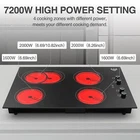 Electric Cooktop, Built-in 4 Burners Electric Stove Top by Knob, Electric Hot Plate with 9 Power Levels 4 burners: Cooking multiple dishes at once has never been easier with this 30-inch electric cooktop, featuring 4 burners with varying wattage levels (2 x 1600W and 2 x 2000W). Save time and energy by cooking different dishes at the same time. Note that this cooktop requires hardwiring for built-in installation. Precise Temperature Control: With 9 heat level settings and easy-to-use knob controls, you have precise temperature control to cook a variety of dishes such as boiling, stewing, frying, and stir-frying. The electric ceramic cooktop's heating effect is similar to that of a gas stove, ensuring your food is cooked to perfection every time. Safety First: It comes with multiple safety features, including over-heating protection, hot surface indicator, child lock, and auto-shutoff. The infrared heating technology ensures there's no high-frequency electromagnetic radiation, making it both efficient and safe to use. Sleek and Space-Saving Design: Designed to fit seamlessly into your kitchen, this 4 burners electric cooktop features a modern built-in design and a sleek knob control for a clean and elegant look. Its compact size allows for more counter space, making it perfect for small kitchens or apartments. You can set the power and timer for a leisurely cooking experience. Child Safety Lock 99Mins Timer Automatic Shut-Off Warm Setting Digital Display Knob Control Specification Power: 7200W Voltage:220-240V Product dimension:30.31*20.47*3.07 inch Control type:Knob Control Knob Control No complicated buttons, easy to operate and use. Electric cooktop is very suitable for the elderly, suitable for people with poor eyesight, not only it is easy to use, but the feeling of rotating the button by hand is more reliable. Multi-Protection Each burner of this 220v electric cooktop applied with multiple safety devices, such as Over-heating Protection, Hot Surface Indicator, Child Lock and Auto-Shutoff. High Power Output High-power induction cooker with 7200W saves you cooking time. Simultaneous 4 burners cooking is freely adjustable to suit your cooking needs and makes it easy to handle multi-person parties. Space-saving built-in design The Electric Cooktop Ceramic Stove 4 Burners has a Smooth vitro ceramic glass surface which is for durable use and maintain, easy cleaning. 9 Temperature Levels Available Can you set the temperature of the induction hob between 212℉-1112℉. You can also set up a 99min timer to turn off automatically when the cooking completes. Very easy to operate. Cooking Everything You Want This electric ceramic cooktop is a versatile appliance that can be used for boiling, simmering, frying, and searing. It is a great tool for home cooking.