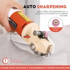 HIGH SPEED CUTTING- With 65mm(2.56") octagonal blade and 2400RPM high speed, its cutting thickness reaches 22mm(0.86"). The cutting is quickly, clean and smooth, without any mess. Tips: Please sharpen the blade before first use. INDUSTRIAL GRADE SCISSORS- This electric fabric cutter is able to cut multi-Layer cloth, fabric, cotton, silk, synthetic fiber, carpet and other materials, suitable for commercial and industrial use! Not suitable for Cardboard, flannel and fluff fabrics ! STRAIGHT & CURVED CUTTING- You could use this cloth cutter to do both straight and curve cutting. To get perfect effect, you'd better draw the lines with chalks before cutting! EASY MAINTENANCE- With built-in sharpening stone, this carpet cutter can automatically sharpen itself. After use, please pay attention to clean the remaining cloth scraps on the blade to prevent the blade from jamming due to long-term accumulation of scraps. POWERFUL COPPER MOTORS- Pure copper motors are more stable and reliable. But due to its powerful motor, this machine would be a little bit heavy, about 2.54lb.