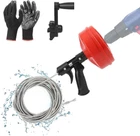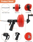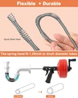 Multifunctional Drain Cleaner: Our plumbing snake drain auger is made for home use, it can quickly clearing debris from the most stubborn drains such as hair, food residue, toilet paper, grease, hair, and mineral blockage in sewers, floor drains, sinks, pipelines, bathtubs Manual or Powered Use: Our 25Ft. snake drain clog remover with drill attachment can be used manually or powered by an electric drill. Our drum auger fit with most electric drills, you simply attach the clog remover to the drill and start to unclog. (Please make sure its speed is lower than 500RPM) 1/4" Spiral Head: Designed for 1-1/4" to 3" diameter pipes, the 1/4" diameter steel snake with spiral head handles a range of drain sizes. Crafted for reliability, this tool helps prevent cable twisting or bending with a recommended usage distance within 4 inches of the drain opening Effortless Operation: Easily clear blockages by clockwise rotating the drum as indicated. Squeeze the trigger to advance the cable into the drain until you reach the blockage. If rotation halts, avoid simultaneous actions. Rotate without advancing or gently proceed to break the clog. After clearing, retract the cable by counterclockwise drum rotation while squeezing the trigger.(In addition, with this product, you family may save nearly $500 per year) Enhanced Design: Engineered with a robust ABS drum shell for lasting durability, this drain snake auger features an ergonomic pistol grip that allowing easy and comfortable use. Comes with a protective glove that offers an extra layer of safety, allowing you to confidently handle the tool while maintaining cleanliness