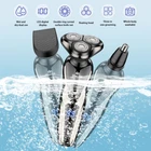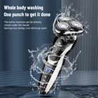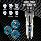 Specification Product features: full body wash, LED display, floating head Shaving head: rotary 3-heads Cleaning method: removable heads for washing Charging mode: USB charging Motor type: brushless motor Duration: about 90 minutes Built-in battery capacity: 1200mAh-2000mAh (including) Whether built-in: battery built-in battery Product noise: 36-45db Features: 1.Smart induction shaver with large LCD display and 3 replaced head. Easily adjust the mode you need. 2.The shaver with automatic reminder cleaning function, which can better protect the product.It also has an intelligent travel lock function to make it more secure. 3.The IPX6 body is waterproof and allows you to use the electric shaver whether wet or dry including even in the shower. It easily adapts to either shaving foam or gel for a better and closer shaving experience 4.Rotary electric shaver,perfectly adapts to the contours of the Face, Neck and even the Jaw for a more comfortable and close shave,minimizing pressure and irritation, provides you a more comfortable, smooth and close shaving experience. 5.Dual-track cutter gently conform to facial contours, for enhanced shaving comfort. 6.With automatic grinding technology and blades self-sharpening, which will not pull the beard or damage skin. Package Include: Groomer *1 Nose Hair Trimmer *1 Cheek trimmer *1 USB cable *1 Cutter head cover *1 Cleaning brush *1 English manual *1