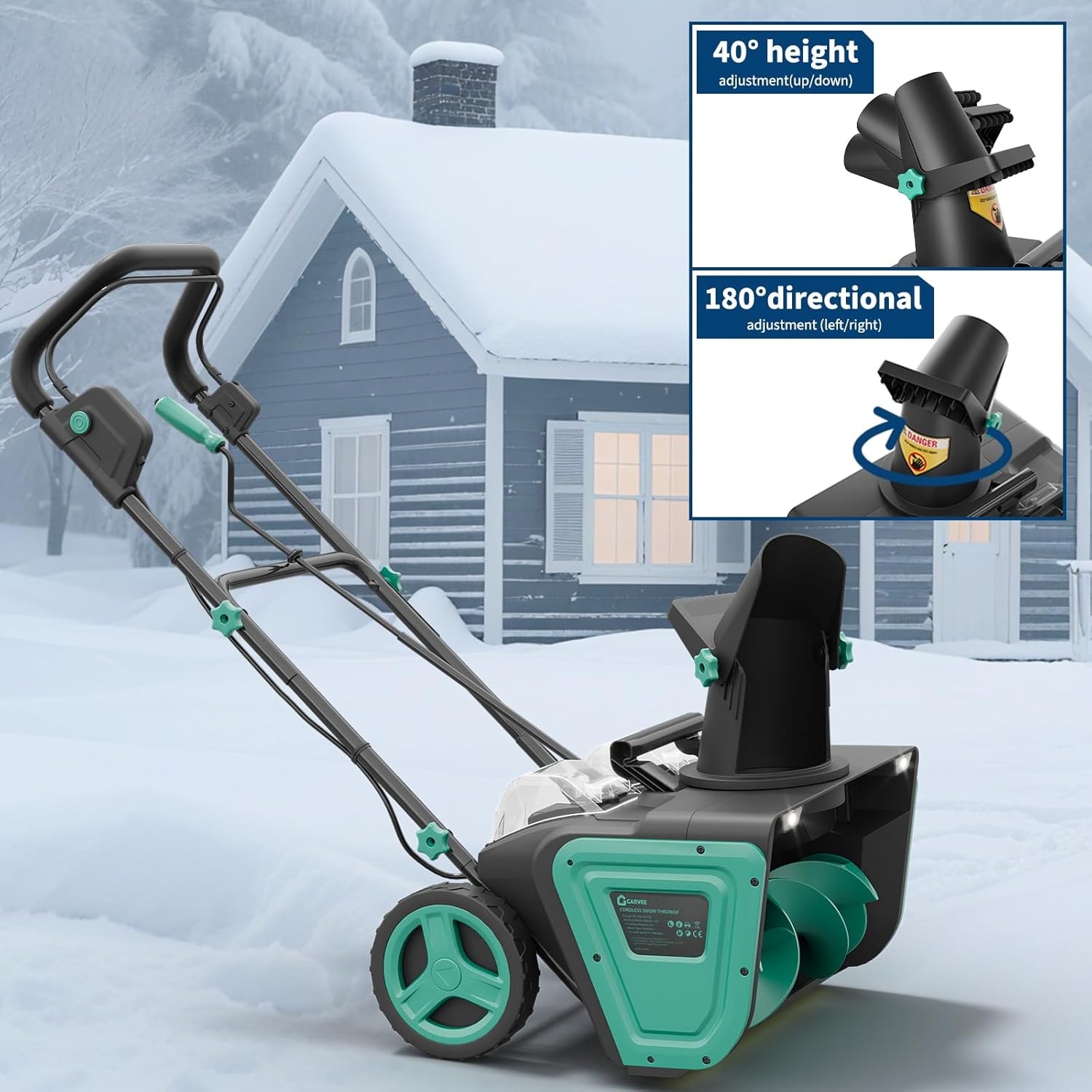 $ 145.220" Cordless Snow Shovel 2*20V 4.0Ah Snow Blower LED Light Electric Snow Thrower