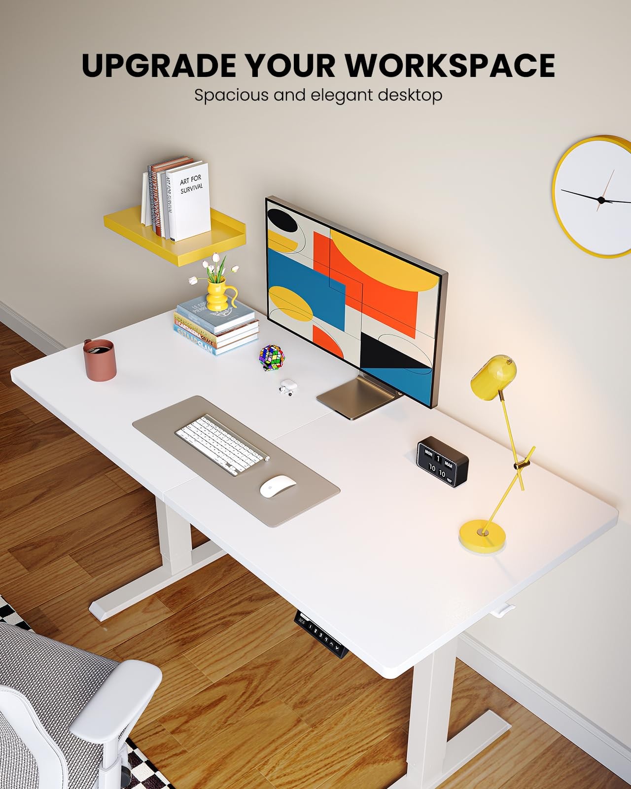Tested Stability & Durability: Crafted from automotive-grade cold-rolled steel, ’s standing desk is built to last with superior strength and stability. Powered by a durable motor tested to withstand 50,000 lift cycles, this sit stand up desk provides a rock-solid foundation and long-lasting performance. Sit-Stand Flexibility: The adjustable height standing desk offers a wide height range from 27.9″ to 46.8″ tall, making it easy to switch between sitting and standing positions. Transform your home office into a more dynamic workspace that encourages better posture, boosts energy, and enhances focus. Upgrade your Workspace: The spacious 47.24″ x 23.62″ surface of this rising desk provides plenty of room to arrange monitors and a laptop along with your keyboard and mouse on top. Available in a range of colors and sizes, you can choose the perfect computer desk dimensions to fit your office setup. 4 Memory Height Presets: Save your favorite height settings using the four preset buttons on the electric standing desk’s controller. Once saved, a single button press allows you to quickly transition between your preferred sitting and standing positions throughout the day. Hassle-Free Assembly: The sit stand home office desk includes detailed instruction manual and labeled parts to make assembly a breeze. Feel free to contact our U.S.-based product support team if you have any questions about stand up desk assembly or product selection.