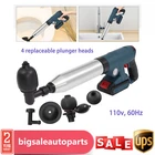 Specification Main Material: ABS, Stainless Steel Color: Blue Model: LD-001 Start Mode: Electric Plug Type: US Voltage: 110v, 60Hz Power Source: 2000mAh Lithium Batteries (Included) Package Size: 53*26.5*11cm/20.87*10.43*4.33in Product Size: 15*68 cm/5.91*26.77 in Toolbox Size: 53*26*11cm/20.86*10.23*4.33in Gross Weight: 3.2kg/7.05lbs Net Weight: 3.1kg/6.83lbs Electric Toilet Plunger Air Drain Blaster High Pressure Sink Dredge Clog Remover Descriptuion Electric Toilet Plunger Air Drain Blaster High Pressure Sink Dredge Clog Remover Description You must also have a meltdown because of clogged pipes at home! This toilet plunger allows you to easily get rid of this embarrassing situation and no longer have to pay a huge amount of money to the repairman. You only need a short time to raise the pressure to 0.4MPA, then pull the trigger and release the high-pressure air. It's that easy! Key Features Efficient Cleaning Power : The toilet plunger uses the power of high-pressure compressed air to blast clogs quickly and easily, with a plunger tip that ensures a seal for tremendous pressure. It is faster and more effective than traditional plungers. Easy to Operate : It's also great for beginners and master plumbers, allowing them to use it with less effort. It takes less time to raise the pressure to 0.4 MPA, then you pull the trigger to release the high-pressure air. It's that simple! User-friendly Design : The reinforced handle, the threaded and the non-slip design make the toilet plunger easy to pump. The non-slip h andle incorporates an ergonomic design for a comfortable grip. Quality Material : It is made of an ABS plastic handle and natural rubber sealing head, reusable without asking for help from a plumber and easy to clean. The stainless steel wall of the barrel is anti-cracking, furth er extending its service life. Ultra-long Life Span : It uses the 2000mah lithium battery, which can be used more than 30 times when fully charged. Therefore, it is especially suitable for repairers to use without worrying about the trouble of frequent charging. Fully Equipped : It has 4 replaceable plunger heads for unclogging all kinds of pipes, toilets, floor drains, bathrooms, sinks, washbasins, vegetable sinks, drains, etc. Therefore, it can meet almost most of your unclogging needs. Easy to Store : The ring trigger on the plunger can also be used as a hanging buckle, which can be hung on the wall after use to prevent the plunger from lying on wet surfaces. Anti-splash : It has a built-in expansion plug and is sealed, which allows it to expand before unclogging, seal the pipe opening and prevent wastewater backflow and splash. Energy-saving and Environmental Protection : It makes you no longer need to use harmful chemicals, so it frees you from the danger of corroding pipes or endangering your family from now on. Details Air Pressure Gauge : The air pressure gauge is designed upward to make it easier for you to see while using it. It allows accurate control of pneumatic activity and operating forces to avoid spillage and damage. Removable Battery Pack : The battery pack at the bottom can be removed for charging, which is very convenient. Toolbox : It is equipped with a specially customized toolbox that can store all the tools inside very well, so it is very convenient for you to carry. Application It is suitable for all occasions, such as toilets, squats, kitchens, swimming pools, and wash basins. It can deal with various blockages caused by various garbage such as hair, cloth, tea leaves, leaves, grease, and oil. Specification Main Material: ABS, Stainless Steel Color: Blue Model: LD-001 Start Mode: Electric Plug Type: US Voltage: 110v, 60Hz Power Source: 2000mAh Lithium Batteries (Included) Package Size: 53*26.5*11cm/20.87*10.43*4.33in Product Size: 15*68 cm/5.91*26.77 in Toolbox Size: 53*26*11cm/20.86*10.23*4.33in Gross Weight: 3.2kg/7.05lbs Net Weight: 3.1kg/6.83lbs Package Included 1* Toilet Plunger 1*Battery Pack 1* Toilet Unclogger Head 1* Washbasin Unclogger Head 1* Squatting Toilet Unclogging Head 1* Floor Drain Unclogger Head 1*Charger 1*Linker 1*Toolbox 1*English User Manual Notes 1. Unclogging toilets, kitchen sinks, floor drains, and bathtubs require the pointer of the barometer to reach 4-5. Please use the appropriate plunger head to clean up, and try to insert the rubber plunger head tightly into the pipe. Do not leave a gap, otherwise the water may splash out with the air. 2. When unclogging the toilet, please pay attention to the fit with the toilet surface. Just tilt 45 degrees when using. 3. If the pipe is in a semi-clogged state, it is recommended to put some toilet paper and debris to make the pipe nearly fully clogged so that the product can be used more effectively. 4. Using more water will not be easy to splash. When using this product for the first time, it is recommended to use other items to cover up so as not to splash themselves. 5. Try not to use more than 10 times in a row so as not to damage the machine by high temperatures. Let it dry for more than 30 minutes before use. 6. Do not point the air release button at the mouth, nose, ears and eyes. Use it with parents when underage. 7. Please note that it cannot be used to unblock blockages caused by hard plastic, glass, metal objects or construction debris. 8. Please choose a wide range of air pressure according to the actual situation and try several times until the unclogging is successful. 9. If you want to unclog a sink that is in a clogged state (in case there are two sinks connected together), please block the other sink first and then unclog it. 10. Please allow the slight color difference caused by the shooting light and 1-3cm error due to manual measurement, and make sure you do not mind before ordering. Payment Delivery details Terms of sales About us Contact us Payment We accept ebay payment 。 Fees such as import duties, taxes are not included in the item price or shipping costs. These charges are the buyer's 