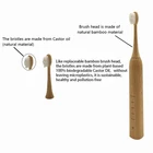 The Bamboo Toothbrush with Castor Oil Bristles is eco-friendly, utilizing renewable bamboo brush head for castor oil bristles, reducing plastic waste and promoting sustainability in oral care products. Sustainable Bristles: Castor oil bristles are plant-based and designed to break down without leaving microplastics, it features an organic castor oil bristles, making it an eco-friendly choice that reduces plastic waste. Unlike traditional nylon bristles made from crude oil, our plant-based castor oil bristles offer a more sustainable option, minimizing reliance on fossil fuels and--- it is much healthier for people. The degradation time of bamboo in the natural environment is approximately 2-3 years. Unlike plastic, bamboo is a biodegradable biomaterial that decomposes rapidly in natural environments. Comparison of bamboo degradation and plastic degradation: Plastic, due to its high chemical stability, typically takes hundreds or even thousands of years to fully degrade. In contrast, bamboo, as a natural biomaterial, degrades much faster than plastic. The rapid degradation characteristics of bamboo give it significant advantages in environmental protection, which can reduce pollution to the environment. New eco-friendly bamboo magnetic levitation sonic etectric toothbrush Exquisite starts with teeth Comprehensive Care For Oral Health 45Days Full Charge Working Time 5Modes Vibration Frequency Up to Vibration Frequency Up to IPX7 Waterproof Deep Waterproofing Magnetic Levitation DuPont Soft Bristles Sonic Moto 5 MODES SENSITIVE For sensitive teeth CLEAN For nomal cleaning every day WHITE For deep clean POLISH For front teeth polish TYPE-C FAST CHARGE 2.5 Hours Charging = 45 Days Working Time Clean Deeply With Soft Dupont Bristles Dupont Soft and Flexible Bristles 40% greater density durable bristles W-Shape Bristles Clean deeply All-round to protect sensitive gums Visible Bright White Continuous use, clean the mouth, and the effect is visible First Week Second Week Third Week Fourth Week The specific situation depends on the individual, and the effect may vary PRODUCT PARAMETERS PARAMETERS:Bamboo magnetic levitation sonic electric toothbrush Product mode:10T Rated power:2W Product size:2.8 * 25cm Mode:Sensitive/Clean/White/Polish/Massage Charging method:Type C Charging time:2.5 Hours Usage time:45Days Vibration frequency:4000Minute Accessories:1 host+2 bamboo brush heads Waterproof grade:IPX7 Battery capacity:500 mAh lithium battery Healthy Benefits of Castor Oil: 1. Moisturizing the intestines and promoting bowel movements: Castor oil contains a large amount of natural oils that can lubricate the intestines, stimulate intestinal peristalsis, accelerate intestinal peristalsis, and effectively alleviate constipation problems. For people who often suffer from constipation due to a fast-paced lifestyle and irregular diet, castor oil is a good choice. 2. Improving hair quality: Castor oil is rich in ricinoleic acid, an omega-9 polyunsaturated fatty acid that can penetrate deep into hair follicles, providing sufficient nutrition for hair, stimulating hair growth, improving hair quality, and reducing hair loss. At the same time, it also has anti-inflammatory and antibacterial properties, which help reduce scalp inflammation and dandruff, and maintain a healthy scalp environment. 3. Anti inflammatory and antibacterial: The key components in castor oil, such as ricinoleic acid, undecylenic acid, vitamin E, and trace elements, can effectively inhibit bacterial growth, prevent wound infections, and treat skin problems caused by fungi or bacteria. Therefore, in terms of skin care, castor oil is also a rare natural "skincare product". 4. Promoting wound healing: Castor oil has the effect of promoting wound healing by stimulating tissue growth, reducing dryness, and lowering the risk of infection. Applying an appropriate amount to skin wounds or surgical wounds can accelerate blood circulation and facilitate the repair of damaged tissues. 5. Other uses: In addition to the above benefits, castor oil has better permeability than any other oil, so it helps the human circulatory system, immune system, and enhances the body's own healing effect. It can also be used to treat skin diseases such as scabies and burns, and has the characteristics of moisturizing and nourishing the skin. At the same time, it may also help improve dental health and combat fungi that cause dental problems. In addition, castor oil can also be used to relieve constipation during pregnancy and treat frostbite. FAQ: 1. What's the the benefits of using an electric toothbrush comparing using the traditional toothbrushes ? The benefits of using an electric toothbrush mainly include the following aspects: 1) Better cleaning effect: Electric toothbrushes can effectively remove dental plaque through high-frequency vibration or rotational motion, especially in the hard to reach areas between teeth and gums, thereby reducing the formation of dental plaque and preventing oral diseases. In addition, electric toothbrushes have a very significant cleaning effect on tooth stains, with cleaning power far superior to manual brushing. The manual toothbrush can only achieve a cleaning frequency of about 300 times per minute, while the vibration frequency of the electric toothbrush can reach 30000-50000 per minute, the difference between them is really very large ... 2) Effort saving: Using an electric toothbrush can reduce hand pressure during brushing, especially suitable for people with weak hand strength or inconvenient use. The timing function of the electric toothbrush can also ensure that the brushing time reaches 2 minutes each time, which is the recommended brushing time by dentists. 3) Massage the gums: The vibration function of the electric toothbrush can massage the gums, increase blood circulation, reduce the occurrence of gingivitis and gum bleeding, and have a good preventive effect on gum health. 4) Whitening teeth and freshening breath: 