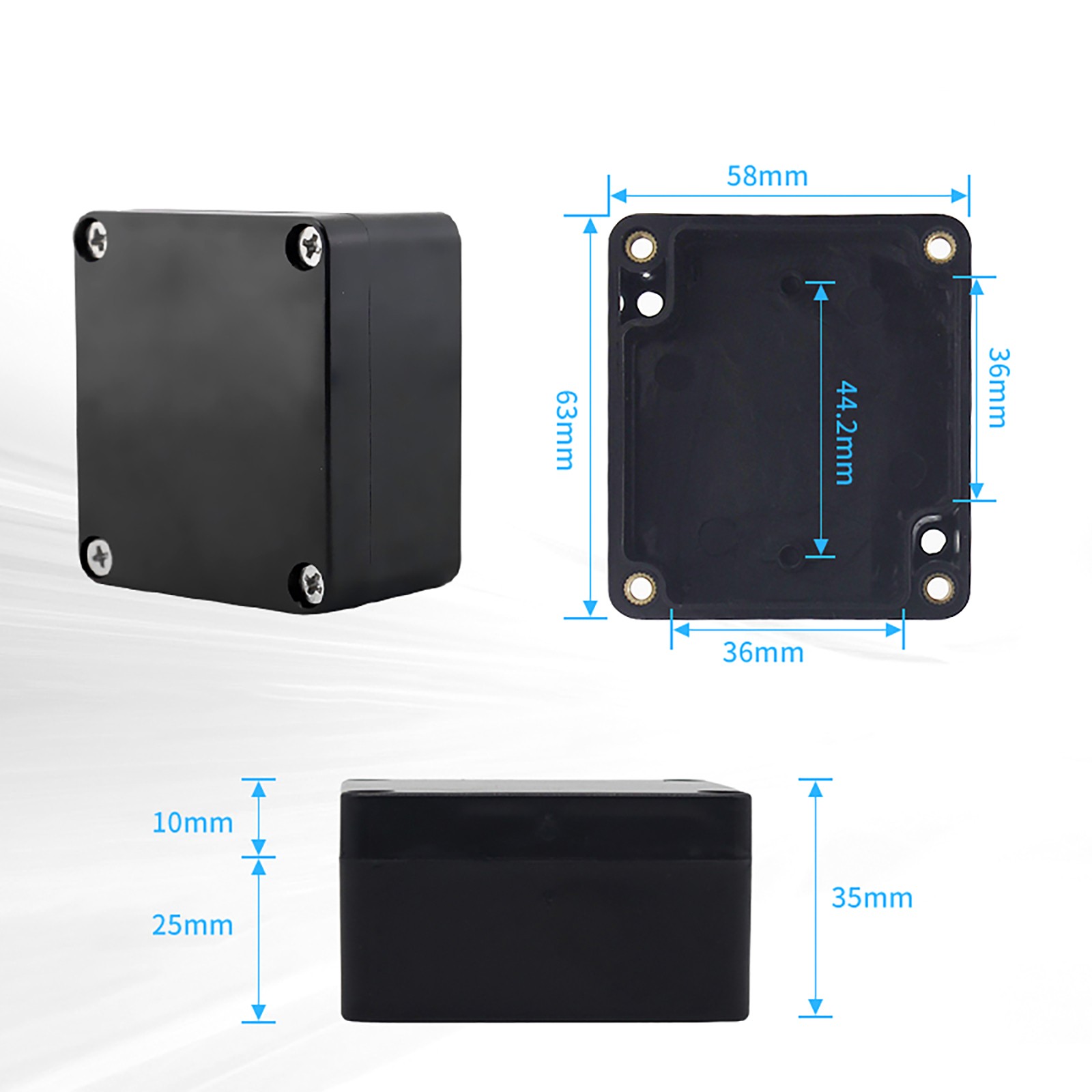 🛠️ Product Features Superior IP67 Weatherproof Protection : Engineered for tough environments. The high-sealing design ensures zero water ingress against rain or moisture and blocks out dust, keeping your internal electronics safe and dry. Hassle-Free Flange Mounting : Features integrated external mounting ears (flanges) that allow for direct wall installation without drilling through the box itself. This preserves the waterproof integrity and speeds up installation time by 50%. Reinforced Industrial ABS : Made from high-performance ABS engineering plastic. It offers exceptional impact resistance, electrical insulation, and anti-aging properties. Optimized for wide temperature ranges , ensuring durability in extreme conditions. Optimized Internal Space : The 100x68x40mm dimension provides a clean, obstruction-free interior, making it perfect for housing power modules, terminal blocks, or PCB boards. 📊 Technical Specifications Material : Industrial Grade ABS Waterproof Rating : IP67 Working Temperature : -40℃ to +90℃ (-40°F to 194°F) Color : White 🏗️ Application Scenarios CCTV Surveillance : Housing for outdoor camera power adapters, connectors, and video baluns. Outdoor Lighting : Waterproof wiring connections for landscape lights and street lamps. Electrical Projects : Enclosure for switches, sensors, PCB boards, and relays. Home Improvement : Protecting electrical splices in humid environments like garages or basements.