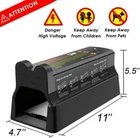 Electronic Mouse Trap Mice Rat Killer Pest Control Electric Zapper Rodent USA ✅Place of delivery: UK warehouse ✅Delivery method: Royal Mail (with tracking number) ✅Handle time: within 24 hours ✅Arrival time: within 2-3 working days Description: Easy to use: Just use the included adapter to insert the device or insert the battery(battery not included), apply a small amount of bait (such as peanut butter, etc.), then place the device in the desired location and turn on the power. When a rodent enters the trap, the electronic mousetrap will send a 7000V electric shock, immediately knocking the rodent down. Precision technology: The electronic mousetrap is equipped with advanced rodent detection technology, which can ensure that the mouse and all other rodents are immediately knocked down without escaping. Suitable for mice, rats, squirrels, chipmunk and other similar rodents. Humane design: The electronic mousetrap can resolve rodents humanely as soon as possible. It works by sending out a 7000V electric shock that immediately knocks down the rodent with almost no pain. Safe and worry-free : The rodents can be freely released / discarded without any dangerous poisons and chemicals, and it will not cause confusion. There is no blood and no contact with dead rodents; to discard extinct rodents, simply pick up the equipment, slide the dead rodents into the trash can, and return the trap to its place for the next capture. Power supply : The product is powered by a dry battery (not included) and UK adapters. At the same time, the adapter is preferentially selected. The battery can be automatically disconnected to avoid power conflicts. Protection : There is a protective switch design. The housing must be assembled before it can be powered on. When the upper and lower parts of the product are opened, the circuit board will automatically be powered off. At this time, the metal plate part can be safely washed with water to remove odor. LED Indicator Instructions: The Red Light Flashes Every 6 Seconds: The machine is already in operation and enters the standby state. Red Light is On: High-voltage discharge. Red and Green Lights Flash Alternately: Under-voltage alarm (if powered by battery, please replace the battery if this happens). Green Light Flashes with Bibi Sound: The rats have been caught. Attention: If you use the battery as a power supply, the device can be used outdoors, but it is not suitable for places where there is water, rain, or condensation.(battery not included) The alarm will only be issued after a high voltage operation. Normally, no conductor contacts the positive and negative poles, it will not cause high voltage operation and alarm. The product generates a high voltage only when the mouse touches two pieces of metal at the same time. If it is a relatively short animal, or if it is stepped on the front foot, but not stepped on the back foot, it will not cause high voltage. It is recommended to target only rats, generally not effective for squirrels. Recommended baits: peanut butter, hazelnut spread, nuts, seeds, sausage, sunflower seeds, walnut oil. Specification: Working Voltage of Power Adapter: 220V Plug Type:UK Plug Battery Type: 4 x No. 1 Batteries (not included) Adapter Power Supply to the Product Voltage and Current: 6V / 1A Static Working Current: ≦ 100uA Working Current: ≦ 1000mA Colour: Black Product Inner Box Size: 11.8"× 4.9"× 3.9" Package Included: 1 x Electronic Rodent Zapper 1 x Power Adapter (UK Plug) 1 x LED Extension Cable 4 x Pairs of Disposable Gloves 4 x Disposable Garbage Bags 1 x Manual Note: 1.Please allow 1cm error due to manual measurement. 2.Due to the difference between different monitors, the picture may not reflect the actual color of the item. Thank you!