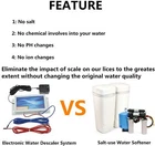 Electronic Water Descaler System Alternative Salt Free Water Softener for Whole House Reduces Limescale Prevent Deposits Build-up Hard Water Conditioner Product information [ Why do you need it ] Normally used city water and tap water contain minerals such as calcium ions and magnesium ions, which are likely to produce insoluble polymers such as calcium carbonate during transportation. After precipitation, they adhere to the pipe wall to form scale, block the pipes, and deteriorate the heating effect of equipment, and rust accumulation, with unpleasant smell. [ How it works ] By conducting complex frequency-modulated electromagnetic signals into the water, when the water flows through the line area, the decomposed water molecules better combine with calcium and magnesium ions to form crystal particles with a smooth surface, which are not easy to adhere to the surface of pipes and equipment.while allowing the existing limescale decomposes slowly. [ Different with salt water softener ] No salt, No chemical involves into your water, No PH changes.Keep the original normal minerals in the water while preventing the formation of scale and the decomposition ,discharge of existing scale. [ Easy to install ] No need to damage the pipeline, just wind the coil outside the pipeline. It is suitable for all kinds of pipelines.This water descaler system should be installed on the main water supply pipe where water enters the building can exert the greatest effect. [ Notices] 1: The high iron level in the water will reduce the effectiveness of the electronic water descaler. For the iron content in the water above 0.3 ppm, recommended to use an iron removal filter before. 2: Operating voltage is 110-120v Working Principle By conducting complex frequency-modulated electromagnetic signals into the water, when the water flows through the line area, the decomposed water molecules better combine with calcium and magnesium ions to form crystal particles with a smooth surface, which are not easy to adhere to the surface of pipes and equipment.while allowing the existing limescale decomposes slowly. Compare with Salt Water Softener No salt, No chemical involves into your water, No PH changes.Keep the original normal minerals in the water while preventing the formation of scale and the decomposition ,discharge of existing scale. Reduce the formation of scale, prevent the clogging of sinks and nozzles, make the faucet and toilet more clean and tidy By softening domestic water, protect all kinds of water equipment from the influence of scale, and greatly extend the service life Solve the problem of wrinkle of clothes caused by hard water, make the washed clothes smoother and softer, and keep them in a brand new state. Solve the problem of hair knotting caused by hard water, make the hair softer and easier to comb Prevent and reduce the scale on the heating equipment, improve the application efficiency, protect the life of the equipment and help you save a lot of electricity bills