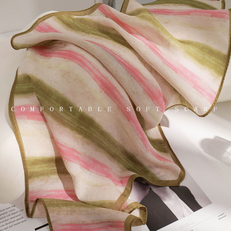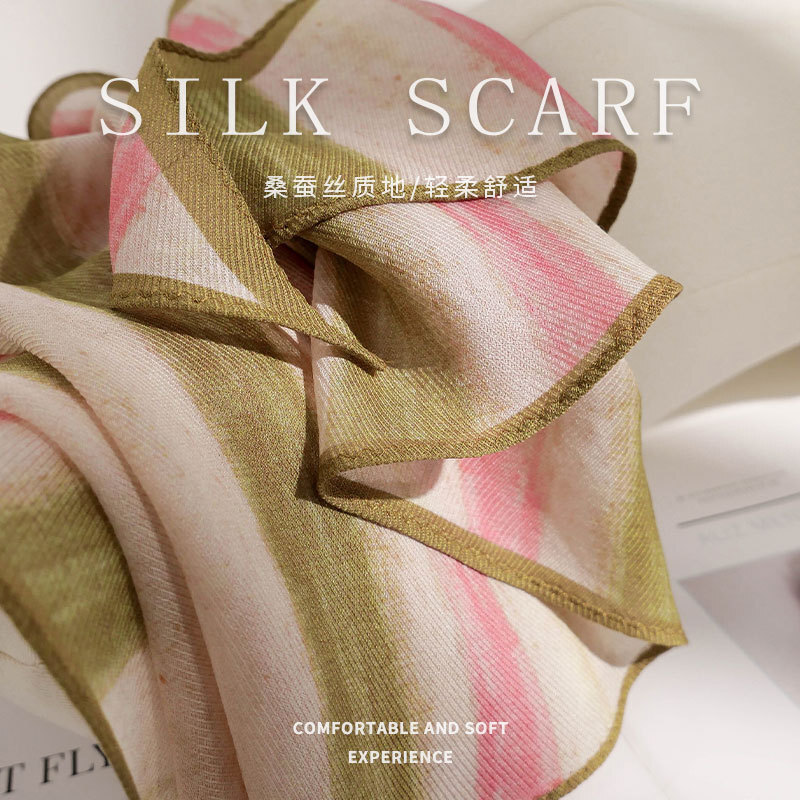 Elegant 100% Mulberry Silk Rhombus Print Thin Neck Scarf 126x36cm