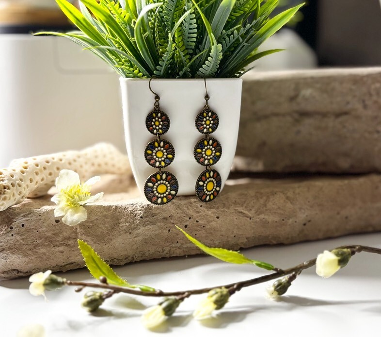 These Bohemian-themed earrings are designed to add a stylish touch to any outfit.