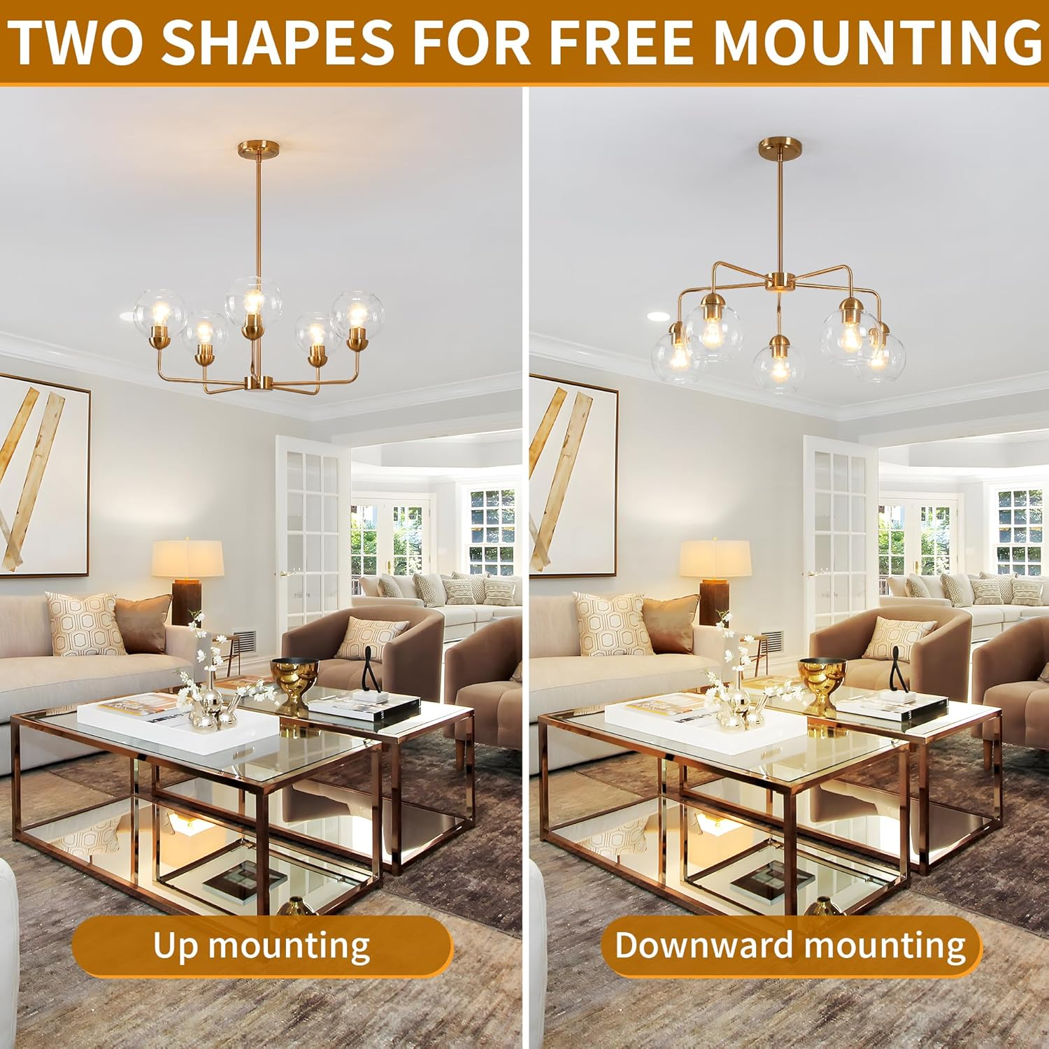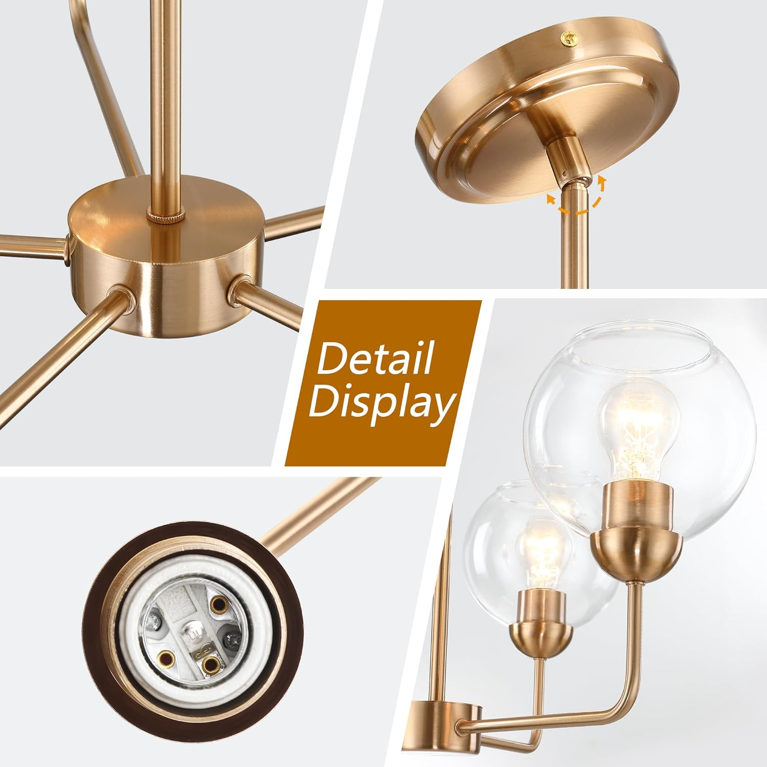Store New Arrivals Add to Favorite View Feedback Contact Elegant 5-Light Gold Chandelier with Clear Glass Globes for Dining Room Description Light Source Type LED, Incandescent Item model number DD066-5-G Style Modern Number of Items 1 Power Source AC Number of Light Sources 5 Control Method Remote Batteries Included? No Lighting Method LED Fixture Type Non Removable Unit Count 1.0 Count Room Type Kitchen island, bedroom, foyer, dining table, living room, dining room, entryway, hallway Assembly Required No Material Glass, Metal Efficiency Energy Efficient Model Name Chandeliers for Dining Room Finish Type Polished Specific Uses For Product Home Included Components Mounting Hardware Indoor/Outdoor Usage Indoor Bulb Base E26 Light Color warm white Water Resistance Level Not Water Resistant Batteries Required? Yes Item Weight 9.17 pounds Light fixture form Chandelier Special Features Adjustable Height, Dimmable, Energy Efficient Special Feature Adjustable Height, Dimmable, Energy Efficient Part Number 5-G Mounting Type Ceiling Mount Color 5-Light Shade Material Glass Finish types Polished Product Dimensions 27.99"L x 27.99"W x 10.16"H Switch Type Dimmer Substantial & Statement-Making Design: Command attention with this large 28-inch 5-light globe chandelier. Its modern mid-century design, clear glass shades, and distinctive arms create a dramatic visual impact. A true statement hanging pendant light, this modern chandelier is perfect for elevating living rooms, dining rooms, or foyers with a retro or vintage aesthetic, serving as a captivating globe pendant lighting fixture. Premium Durable Construction: Experience unparalleled durability with sturdy iron and an elegant Gold finish, perfectly complemented by clear glass globes. This robust chandelier ensures reliable, consistent brightness. A modern hanging light fixture, embodying sputnik-inspired quality, this pendant lighting fixture is ideal for homes and commercial settings, offering premium chandelier lighting. Two Shapes for Free Mounting,Upward & Downward,Versatile Room Illumination: Illuminate any space with flexibility. This generous 5-light globe pendant light is ideal for kitchen islands, dining tables, farmhouse entryways, or commercial settings. Providing ample, well-distributed light, its versatility complements industrial, traditional, and mid-century modern styles, enhancing any room as a central ceiling light fixture. This globe chandelier offers a versatile pendant lighting solution for diverse interiors. Superior Craftsmanship & Customization: Engineered with five E26 sockets (bulbs not included) for LED, incandescent, or vintage filament bulbs. Dimmable for precise brightness control. The anti-tarnishing Gold finish ensures lasting beauty. This stunning modern pendant light is perfect for mid-century modern living or dining room chandelier schemes, serving as an exquisite modern chandelier lighting fixture or a sophisticated pendant light fixture. Hassle-Free Support & Warranty Assurance: Shop with complete confidence. Your satisfaction is our priority, backed by responsive 24/7 customer support ready to assist with any questions about your modern ceiling pendant lighting fixture. We guarantee a smooth experience with a 30-day free return or exchange policy and a full 1-year manufacturer's warranty on all parts for your new statement globe chandelier, ensuring this modern chandelier or sputnik-style pendant lighting brings lasting joy to your home and its lighting needs, a truly secure luminaire purchase and a valuable lighting investment in this exceptional lighting apparatus. Product description PASENTEL Add to Cart Add to Cart Add to Cart Add to Cart Customer Reviews 4.8 out of 5 stars 15 4.8 out of 5 stars 15 4.5 out of 5 stars 142 4.0 out of 5 stars 21 4.5 out of 5 stars 122 4.5 out of 5 stars 122 4.5 out of 5 stars 122 Price $95.99 $ 95 . 99 $74.99 $ 74 . 99 $39.99 $ 39 . 99 $65.99 $ 65 . 99 $79.99 $ 79 . 99 $89.99 $ 89 . 99 $179.99 $ 179 . 99 Size L28*W28*H51.37 inch L23*W23*H51.37 inch 11"L x 11"W x 16.5"H 36.25" L*10.25" W *39" H 11.87"L x 11.87"W x 10.25"H 11.87"L x 11.87"W x 5.62"H 17.5" × 17.5" × 6.61" (L×W×H) Color Gold Gold Chrome Black Chrome Chrome Black Material Metal, Glass Metal, Glass Metal, Crystal Metal, Crystal Metal, Crysta Metal, Crystal Metal, Crystal Max. Power 60W 60W 60W 40W 60W 60W 60W Bulb Base 5*E26 3*E26 1*E26 6*E12 2*E26 2*E26 4*E26 PASENTEL ✔ ✔ ✔ ✔ ✔ ✔ ✔ Energy-Saving ✔ ✔ ✔ ✔ ✔ ✔ ✔ Long-Lasting ✔ ✔ ✔ ✔ ✔ ✔ ✔ Simple Style for Any Space ✔ ✔ ✔ ✔ ✔ ✔ ✔ Dimmable ✔ ✔ ✔ ✔ ✔ ✔ ✔ ABOUT US We’re committed to offering great deals on quality products you can trust. From home décor and garden essentials to tools, hardware, and pet accessories, there’s something for everyone at prices you’ll love. SHIPPING Orders ship directly from the USA for fast and reliable delivery. Most items ship within 1 business day and include free shipping to the lower 48 states. International orders are fulfilled through eBay’s Global Shipping Program. Simply proceed to checkout to view shipping costs, duties, and taxes for your country. FREE RETURNS We offer a 30-day return policy on items you are not completely satisfied with. You may choose a full refund or an exchange.. CUSTOMER SATISFACTION We do everything we can to ensure every customer is fully satisfied. If something is not right, send us a message and we will take care of it quickly.