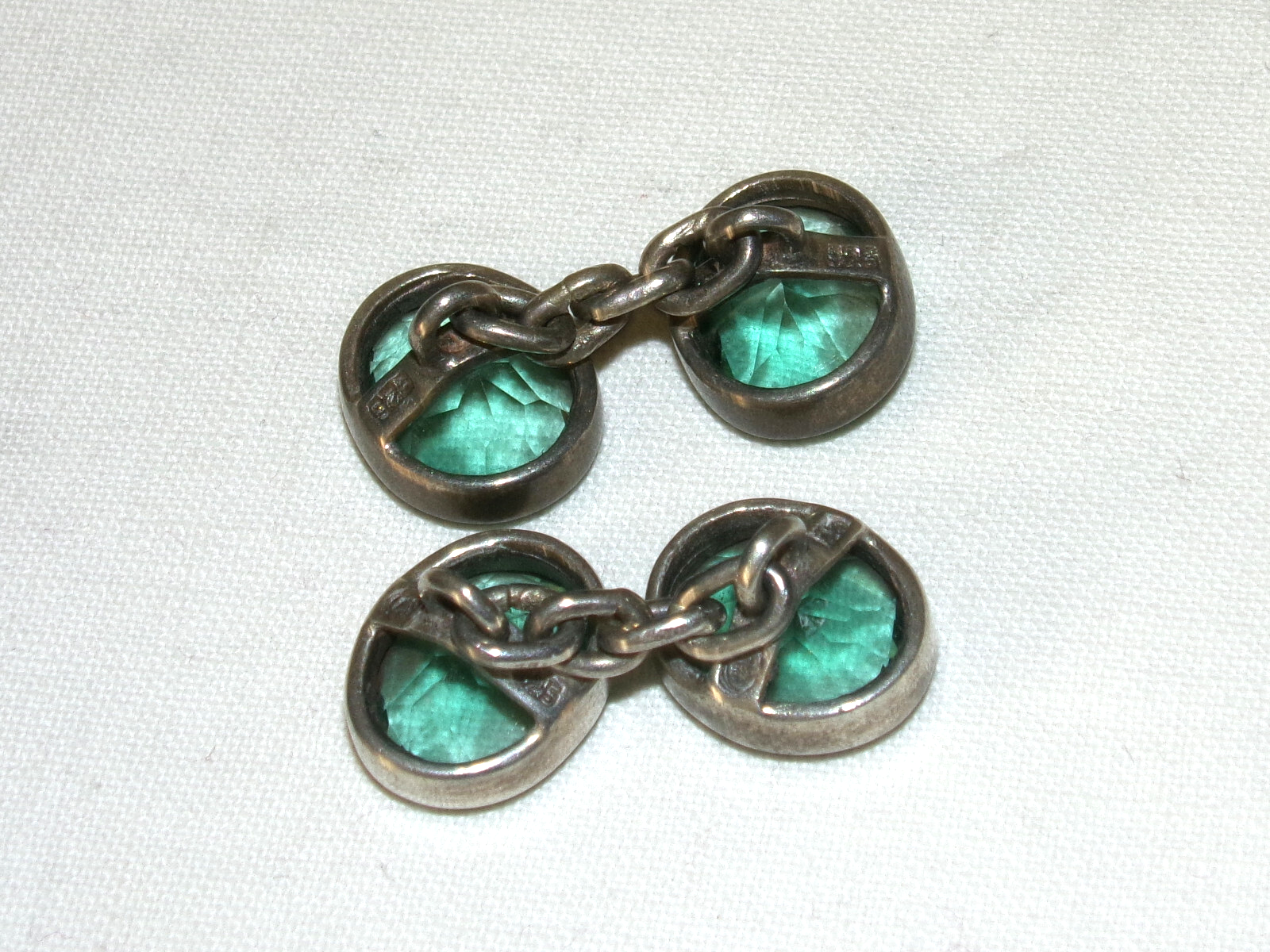 For sale is a pair of beautifully decorated silver cufflinks with faceted gemstones. They are marked 925 for silver with the makers mark MW. There is just minor wear and they need a clean. Beautiful cufflinks, the head measures about 1.4c m by 1cm .