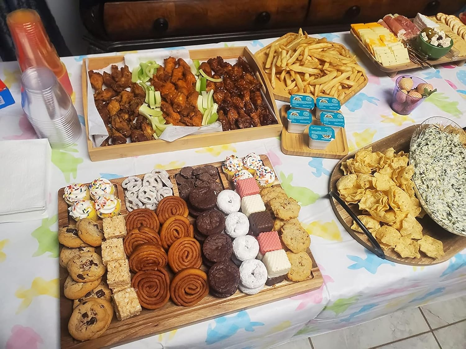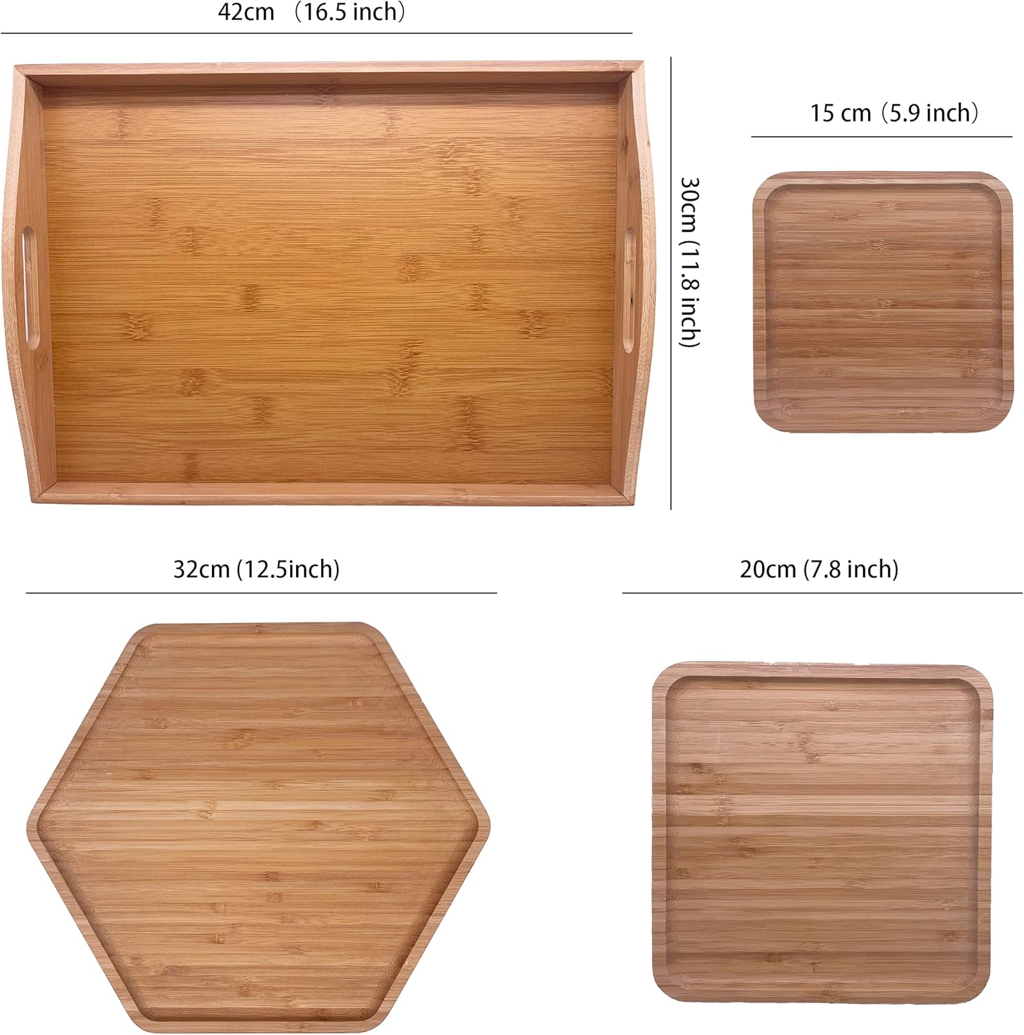 WE UPDATE THE Craft Process Method TO SOLVE THE BROKEN PROBLEM. Natural bamboo material with high temperature steam good for healthy Big size 16.5"x11.8"(42x30cm) with handle rectangle dinner plate food wouldn't fall out. 1hexagon+2square small plates: 1xHexagon 12.5"(32cm)+1xSquare 7.8"(20cm)+1xSquare 5.9"(15cm) Just hand wash the plates but do remeber not to put it in dishwasher or expose in the sunlight. Renewable bamboo livespan less than wooden for better protect environment we recommend use bamboo. Product Description Enjoy your life, Enjoy your family time with PAFREWOG Dinner Plates Set -PAFREWOG bamboo round design -Gorgeous work of art for everyday use & decoration -Sweet gift for any occasions There are 3 specification for small plate 1hexagon+2square small plates: 1xHexagon 12.5"(32cm)+1xSquare 7.8"(20cm)+1xSquare 5.9"(15cm) 2hexagon+1square small plates: 1xHexagon 12.5"(32cm)+1xHexagon 9.8"(25cm)+1xSquare 5.9"(15cm) 4square small plates: 2xSquare 7.8"(20cm)+2xSquare 5.9"(15cm) 1hexagon+1rectangle+1square small plates: 1xHexagon 12.5"(32cm)+1xRectangle 9.8"(25cm)*5.9"(15cm)+1xSquare 5.9"(15cm) 1hexagon+1square+1circle small plates: 1xHexagon 12.5"(32cm)+1xSquare 7.8"(20cm)+1xCircle 7.8"(20cm) Cleaning Notification: 1. Dishwasher is not allowed. Hand wash the dinner plates set with soapy water and dry it . Wipe with oil after use if it is possible to ensure the lifetime. 2. DO NOT use steel wool, harsh detergents or abrasive cleansers which may scratch the surface of the bamboo plates. 3. DO NOT soak in the water for a long time. 4. DO NOT put in microwave, dishwasher, oven, freezer.