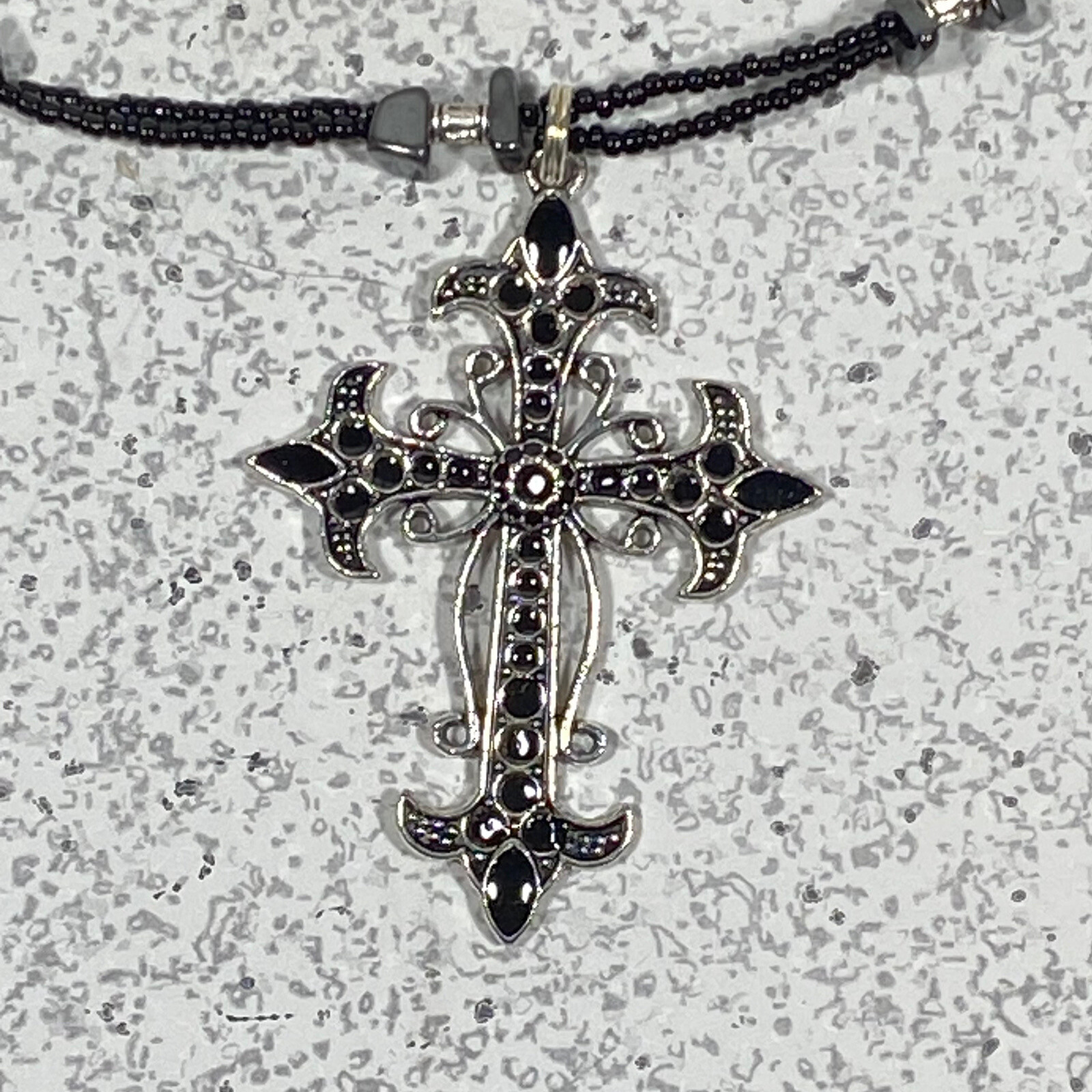 Beautiful Beaded Necklace With Cross.