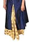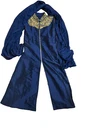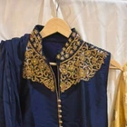 This sophisticated three-piece ethnic set includes: Kurti: Rich navy blue kurti with intricate gold embroidery on the collar and neckline, featuring stylish front buttons. Skirt: Golden flared skirt with a luxurious metallic polka-dot pattern for a glamorous look. Dupatta: Coordinated blue dupatta in soft, lightweight fabric. Perfect for weddings, festive celebrations, or cultural events. This set blends traditional elegance with modern flair. Size: M Condition: Gently used, excellent condition Material: Silk-blend and brocade