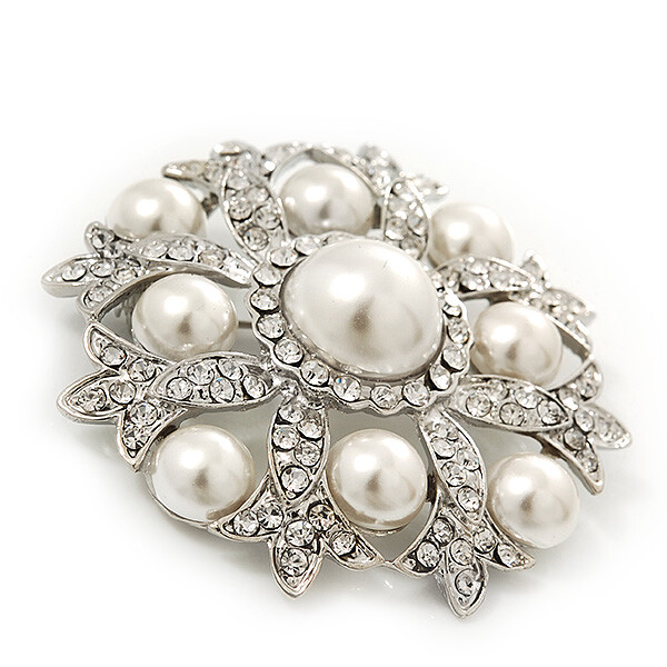 Bridal Swarovski Crystal/ Simulated Pearl Corsage Brooch In Rhodium Plating - 5cm Diameter Lots of ensemble casts have a breakout star. Meet your jewellery box's newest standout in this dazzling brooch. Whimsical design and serious shine make it a well-rounded complement to scarves, tops and dresses that nevertheless earns the style spotlight. The brooch crafted in rhodium plated metal and heavily encrusted with clear Swarovski crystals and alternated round pearls. The brooch measures about 5cm in diameter, fastens with a flag pin and revolver. Murzana offers a great selection of fashion and costume jewellery: affordable everyday necklaces, chokers, bracelets, bangles, armlets, rings, earrings, brooches, hair jewellery and other accessories. We invite you to check our whole range and decide on your favourite items by adding the them to your wish list or straight to your basket! Bridal Swarovski Crystal/ Simulated Pearl Corsage Brooch In Rhodium Plating - 5cm Diameter product code: B02409 occasion: bridal, cocktail party, prom night metal finish: rhodium plated gemstone: faux pearl, diamante collection: pearl wear on: apparel, bag, lapel, pocket fastening: rotating pin clasp diameter: 5.0cm (1.97") weight: 18g (0.63oz) DESCRIPTION Lots of ensemble casts have a breakout star. Meet your jewellery box's newest standout in this dazzling brooch. Whimsical design and serious shine make it a well-rounded complement to scarves, tops and dresses that nevertheless earns the style spotlight. The brooch crafted in rhodium plated metal and heavily encrusted with clear Swarovski crystals and alternated round pearls. The brooch measures about 5cm in diameter, fastens with a flag pin and revolver. ALTERNATIVE VIEWS OUR PROMISE We take every effort to ensure that you receive a product without any defects or faults. On a rare occasion where the item was damaged during shipment or there is a manufacturing fault, please contact us to arrange a free return. We will refund you for the faulty item and its postage so that you are never left out of pocket. PAYMENT We accept all standard payments that are facilitated by Ebay. ORDERING AND SHIPPING We deliver world-wide using Royal Mail services. Your order will be dispatched on the same working day if we receive your payment by 2pm (UK time). Items purchased after 2pm on Friday and on the weekend will be shipped on the following Monday. For shipments outside of the UK we can combine your shipping costs for multiple items, so that you pay just one shipping cost for the entire order. Please request a total from us by clicking on a relevant link at the checkout. RETURNS You may return this product for a full refund within days of purchase date. Please follow our returns procedure to return the goods. CUSTOMER SERVICE AND FEEDBACK We are committed to provide the best customer service and to deliver 100% customer satisfaction . If for any reason you are not satisfied with your purchase, please contact us first before leaving a negative feedback. We strongly believe that all issues can be resolved in a positive way.