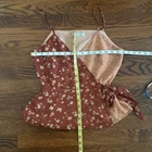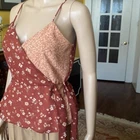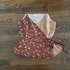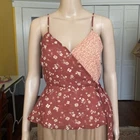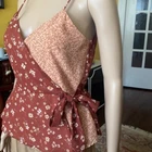 Double Print faux wrap peplum tank top with side ties - Adjustable spaghetti straps - Surplice neckline - Sleeveless - Peplum - Elasticized back waist - Double floral print - Lined Like new condition Hello & Welcome! All sales are final! Pictures are the best part of the description for style/details. Please ask questions before buying, No cancellations. No returns. Read entire description and see all photos. Not responsible for fit . Please double check all measurements against a similar well-fitting garment. I do not accept returns for size. If you need any additional measurements please let me know BEFORE making your purchase. Measurements are approximate / colors may appear slightly different in person Thanks for looking! Check out my other great items, I will gladly combine shipping.