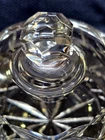 This is a beautiful yet useful heavy crystal cut glass covered cheese or butter dish. The plate with the attached bowl is 6 1/2" wide, the bowl itself is 4", the height from the bottom to the top of the knob is 5" and the weight is 2 lbs 12 oz. This would be a nice flourish to an elegant table setting!