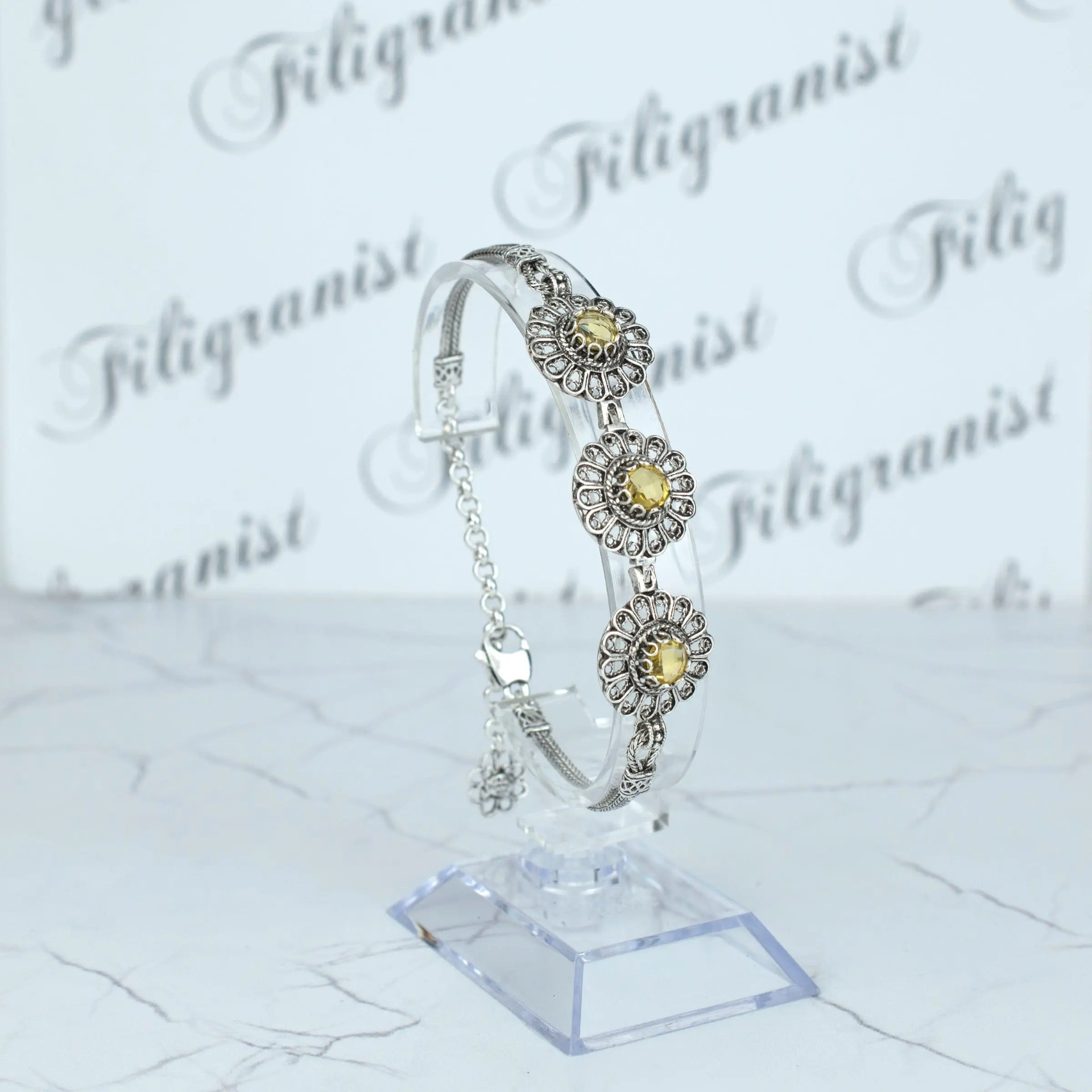 Add a touch of elegance to your outfit with this stunning 925 sterling silver handmade filigree art citrine gemstone women's link bracelet. The bracelet features 6.00mm double-sided faceted, checkerboard round cut citrine gemstones, which are perfect for those born in November as it is their birthstone. This adjustable bracelet has a length of 7.00 inches with an additional 2.00 inches extension length to ensure a comfortable fit for any wrist size. The intricate filigree art design and high-quality materials make this bracelet an excellent gift option for special occasions such as anniversaries, birthdays, or Thanksgiving. With every purchase, you will receive a silver polish cloth to keep your bracelet looking its best and a luxurious gift box to make it the perfect gift for your loved one. Don't miss out on the opportunity to add this exquisite piece of jewelry to your collection. Order now and experience the beauty and elegance of 925 sterling silver and citrine gemstones for yourself!