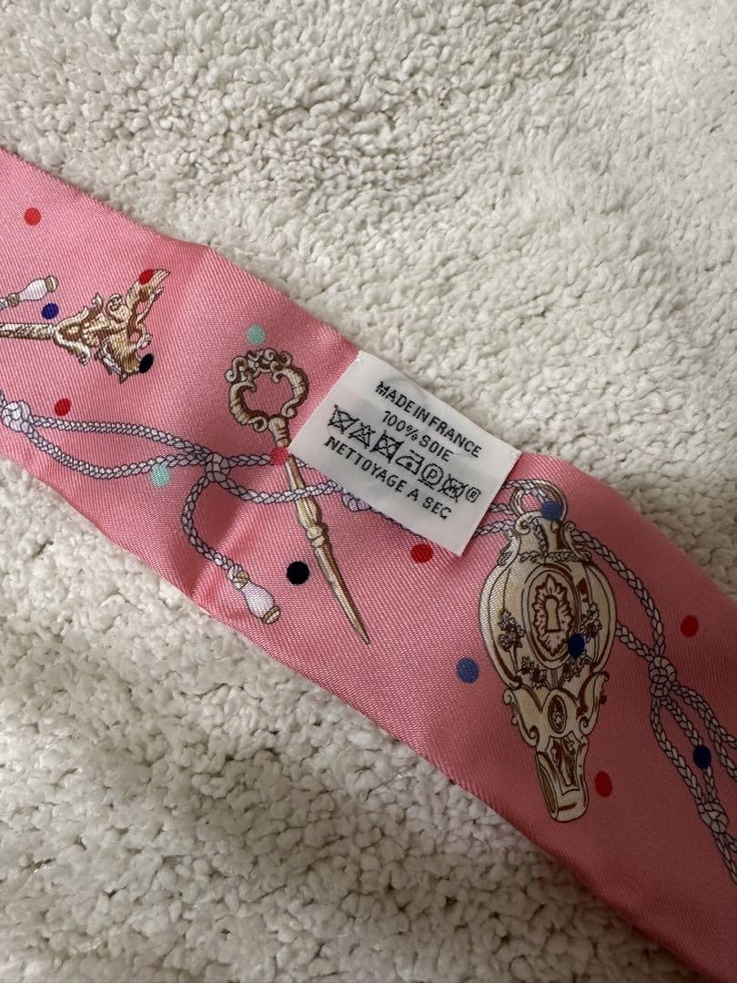 $ 133.45HERMES Silk Twilly Scarf with Playful Heart Print Design