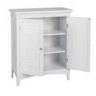 Upgrade your home storage while adding classic style with the Elegant Home Fashions Glancy Wooden Floor Cabinet with Shutter Doors. This decorative cabinet features a timeless white finish with a crown molded top and skirting, chrome-finished knobs, louvered doors, and shaker-style legs for a beautiful addition to your space. The included fixed shelf and an adjustable shelf make this cabinet functional and customizable to suit your storage needs. Constructed from durable engineered wood with included anti-tipping hardware, this storage unit is built to provide you with long-lasting organization. Easy, step-by-step instructions and all of the hardware needed for installation are included for quick assembly Elegant Home Fashions Glancy Two Shutter Doors Wooden Storage Stand Floor Cabinet White Features Featuring crown molded top, shaker-style legs and a pair of faux louvered doors in white Two interior adjustable shelves to help reduce clutter and keep your home tidy, without making permanent changes Made of sustainable engineered wood that is less likely to warp, crack, or rot than solid wood Magnetic latch ensures a gentle, silent close, eliminating door slamming Dimensions: 25.98" L x 12.99" W x 32.01" H SKU:ELG-585 The Teamson Home Glancy Freestanding Floor Cabinet is a versatile storage solution featuring a white finish and faux louvered doors that stay closed with a magnetic latch. Shaker-style legs, crown molding on top, and a pair oval-shaped satin nickel knobs blend to create a decorative, functional cabinet. Made of engineered wood, a pair of interior adjustable shelves can be used to customize storage.