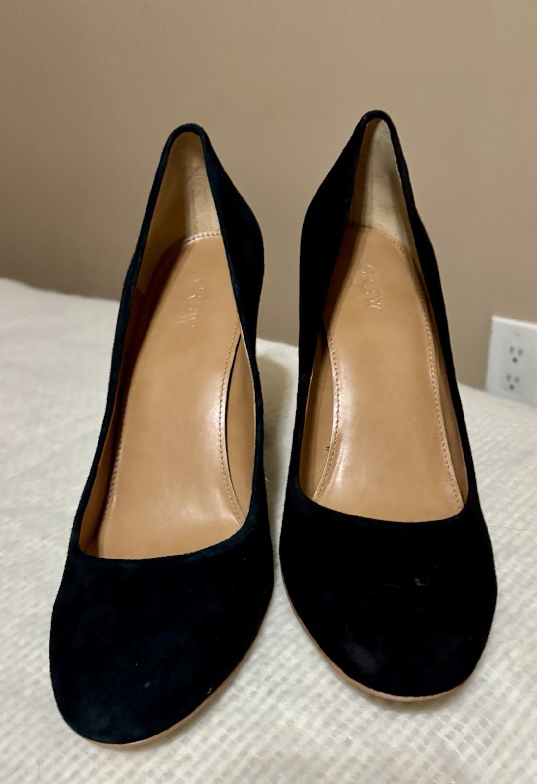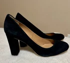 These J Crew black suede high heel pumps in size 11 are perfect for formal occasions and parties. The elegant solid black color, block heel style, and suede upper material add a touch of sophistication to any outfit. Made with leather lining and insole, these pumps are comfortable and stylish, making them a versatile option for various seasons like summer, fall, and spring.