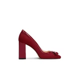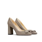Khaki Suede Square Buckle Rhinestone Heel Shoes Fall Square Toe High Heel