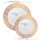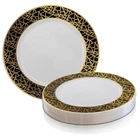 Elegant Mosaic Design Disposable Plastic Plates Wedding Party Value Sets 120 PCS Item Details Smarty Had a Party The Elegant Smarty Had a Party Chic, convenient and versatile, the Smarty Had a Party Disposable Plastic Round Mosaic 10.25" Dinner Plates, and 7.5" Salad/Dessert Plates will blend seamlessly into a wide range of decor. They're made of high-quality plastic to provide long-lasting strength without the risk of breaking and are fully disposable to minimize cleanup time. Sleek and stylish, these durable plastic dishes will bring an elegant presence and functionality to any table. Heavyweight, Durable Plastic Dinner and Salad/Dessert Plates. Designed for banquets, weddings, engagements, birthdays, baby showers, parties, upscale catering and home dinners, these plates are expertly crafted using heavyweight, thermo-resistant plastic construction. Each dinner plate boasts a 10.25-inch size, while each salad/dessert plate boasts a 7.5-inch size. All plates are designed with beautifully embossed rims. The wide rim provides easy handling, while also preventing any unwanted accidental spills or stains on your table. Dinner and Salad/Dessert Plates for Optimal Setting Presentation. Transform every meal into an occasion by ensuring all the convenience of plastic. Conveying high-quality construction and definitive design, you can set your table to perfection with the Smarty Had a Party. These plates will add a radiant shine to any table, providing the sophisticated look of a formal setting without having tons of dishes to wash when the event is over. Brightens Any Table. For more informal functions and buffets, you can neatly stack the plates at the corner of a table for guests to serve themselves. The shimmering look is perfect for all occasions and the sturdy material doesn't break easily to ensure it lasts throughout the entire function. To accommodate large festivities, the Vintage Collection is available in a 120-count package. When it comes time to celebrate weddings and other special parties, make sure there's enough plates to go around. These are also available in value sets sold at a cheaper price wherein you'll get 120 dinner plates and 120 salad plates., a total of 240 plates! FASHIONABLE STYLE . Boasting a mosaic design, the Smarty Had a Party Mosaic Collection provides the elegant look of a formal setting. Sturdy construction joined together with smooth, modern lines will bring a refined presence and functionality to any table. HIGH-QUALITY CONSTRUCTION . These heavy-weight plates are expertly crafted using thermo-resistant, durable plastic construction. The sturdy material won't break easily to ensure it lasts throughout your special event. VERSATILE USE . You can transform every meal into an occasion by ensuring all the convenience of plastic. Designed for all occasions and events, these round plates are great for weddings, parties, engagements, banquets, birthdays, baby showers, upscale catering and home dinners . CHOICE OF SIZE . When it comes time to celebrate, make sure you don't run out of plates for you and your guests. The disposable, plastic plates are available in a 120-count or 240-count package to accommodate large functions . DISPOSABLE PLATES . Don't worry about cleanup, when you can enjoy entertaining your guests instead. These plates are disposable and recyclable for added convenience, allowing you to set your table to perfection without having tons of dishes to wash later. PERFECT SIZE . Furnishing a 7.5-inch or 10.25-inch size, this heat-resistant plate provides sufficient space for a variety of hot and cold foods alike. Each plate boasts a wide rim to provide easy handling while also preventing any unwanted accidental spills or stains on your table. About the Seller Smarty Had a Party is a leading manufacturer designer, distributor and wholesaler of the highest quality plastic party supplies. Smarty Had a Party is a family owned business that takes enormous pride providing world class customer service. As an internationally renowned special event supplies company, Smarty Had a Party carries an extensive selection of top of the line plastic plates, dishes, bowls, cutlery, cups and glasses. Smarty Had a Party's philosophy is to maintain an eye towards future trends in the event planning industry. Payment We accept payment by any of the following methods: Immediate payment is preferred in all transactions. Shipping FREE Priority Shipping on all orders! Your order will be dispatched within 1 working day of receiving payment (Monday-Friday). In the very unlikely event that your item is lost/damaged during post, then WE are responsible and will issue either a full refund or replacement. Returns If you are not 100% satisfied with your purchase, you can return the product and get a full refund or exchange the product for another one, be it similar or not. You can return a product for up to 30 days from the date you purchased it. Any product you return must be in the same condition you received it and in the original packaging.