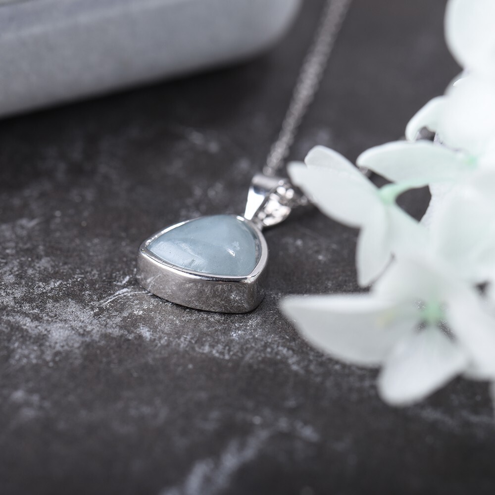 This elegant triangle pendant necklace is the perfect addition to any jewelry collection. The pendant is made of natural aquamarine, with a beautiful eye-clean clarity grade, and is set in sterling silver. The necklace is 45-50cm in length and is adjustable for the perfect fit. The necklace is ideal for any occasion, including engagement, wedding, graduation, birthdays, and more. The pendant's unique shape and the intricate design make it a stunning piece that will receive compliments. The Sey-Wow brand is known for its high-quality jewelry, and this necklace is no exception. Add this necklace to your collection today and elevate any outfit. Package includes: * Pendant * Necklace * Free jewelry Gift Bag * Free Jewelry Cleaning Cloth * Free Gift with each purchase * Free Shipping