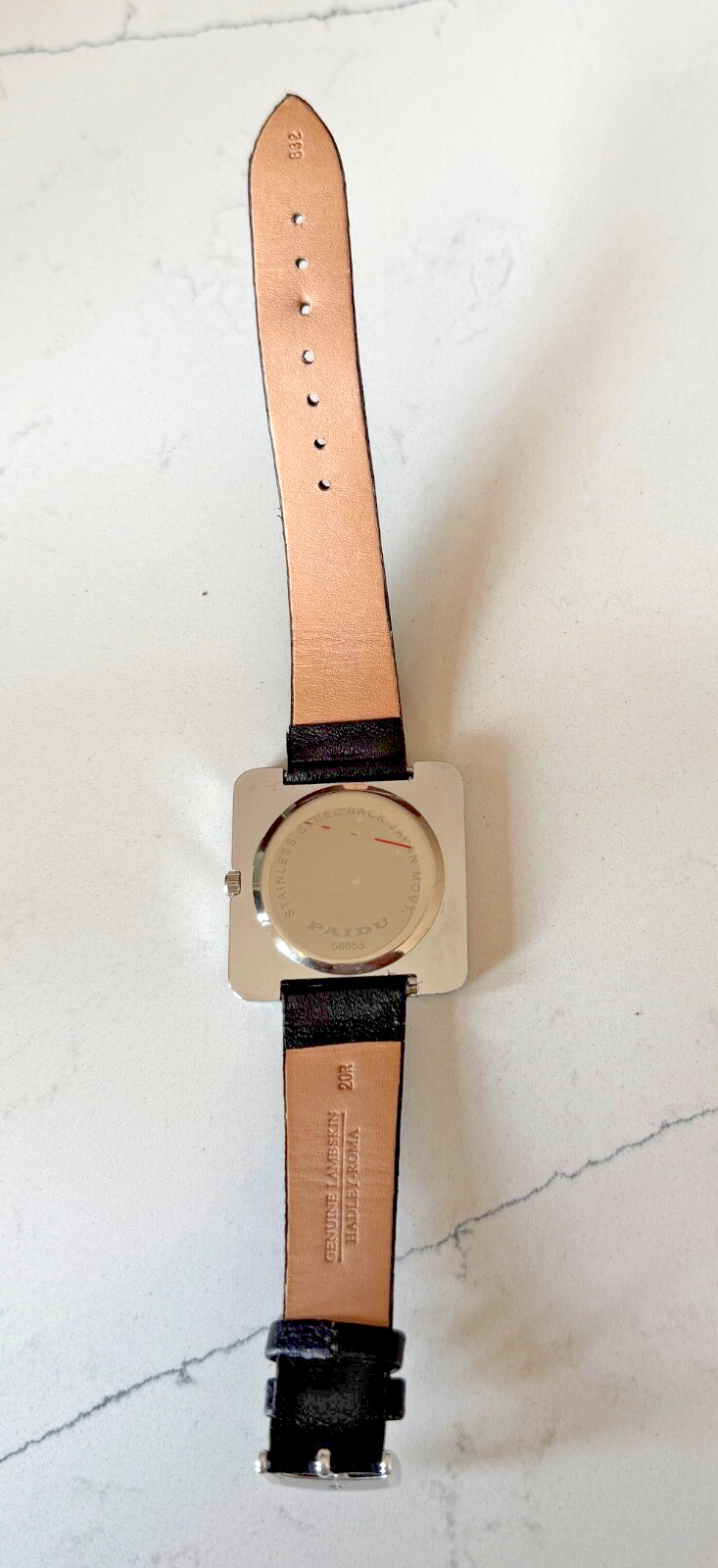 Stainless steel Paidu watch with floating minute hand. Beautiful and unusual; Japanese Movement. Notice slight discoloration on the top side of the watch case.