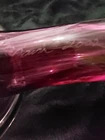 This beautiful vase is a one-of-a-kind piece from Bavin Glassworks. The unique design features a stretched lily shape, handmade with pink and clear glass using the hand blown glassmaking technique. The vase was produced in 2002 and is signed by the artist. Its impressive size of approximately 16 inches at its longest, and about 6 inches wide really catches the eye. There is a small water reservoir for water/flowers. The lily subject is perfect for collectors who appreciate decorative items, and the vase is a great addition to any collection. This piece is perfect for display in any room of your home and will be a conversation starter for sure. Don't miss out on the opportunity to own this stunning handmade glass vase from Bavin Glassworks. No chips or cracks. Experienced glass shipper. Thank you for looking!