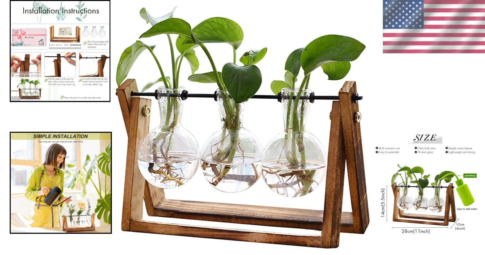 Elegant Plant Terrarium with Rotating Metal Holder - Perfect for Home Offices ‹ › ‹ › ‹ › ‹ › ‹ › ‹ › ‹ › ‹ › Elegant Plant Terrarium with Rotating Metal Holder Perfect for Home Offices Features: Stylish photo prop that complements Cool and Vintage Ins styles. Create a unique décor statement by filling with colored water, stones, flowers, plants, or even a small fish. Combines natural wood and clear glass - sturdy wood frame with 3 high boron silicon heat resistant glass bulbs. Elevates your home office décor, adding freshness and elegance to any space. Great for floral arrangements, cutting plants, artificial flowers, or live houseplants. Observe the growth conditions of plants like Scindapsus, Pothos vine, Lucky Bamboo, and even herbs. Ideal for various settings - from windowsills to office desks, living room tables, bedrooms, nurseries, or kitchens. Gifting Ideas: The best gift for women plant lovers - perfect for occasions like Mother's Day, birthdays, Christmas, Valentine’s Day, and Thanksgiving. Thoughtful gift for nature lovers and gardeners - ideal for weddings, anniversaries, and special occasions. Dimensions: Wooden stand size: 5.5"H x 11" W x 4" D Each vase size: 3.74" H x 2.75" W (1 inch diameter opening) Perfectly sized for desktops, easy to set up with included hex driver and screws. Why Choose Our Elegant Plant Terrarium? Bring a fresh and energetic atmosphere to your home with our elegant plant terrarium. Designed with a perfect blend of natural wood and clear glass, this propagation station is not only a practical plant holder but also a stunning accent piece for any room. Whether you are an avid gardener or simply someone who appreciates the beauty of nature, this terrarium is destined to become a focal point in your home or office. Don't miss the opportunity to enrich your indoor space - order your Elegant Plant Terrarium today and let nature's beauty flourish in your life! Shipping Free & Fast Shipping - We offer free shipping to most of the USA with a normal delivery time of 3-7 days. However, due to the current situation, additional delivery time (up to 3 weeks) may be required for some items. Alternative Carriers - We may use alternative carriers (e.g. USPS, FedEx, UPS, etc.) to ensure your package arrives safely and on time. Due to the use of multiple carriers, we are unable to provide a tracking number automatically. Handling Time - Orders are processed and shipped within 1-2 business days of receiving cleared payment. Shipping Restrictions - Shipping to Alaska, Hawaii, Puerto Rico, Guam, and other US territories may incur shipping charges or delivery restrictions. Please contact us before ordering, or your order can be refunded/cancelled. State Restrictions - There may be restrictions based on your state of purchase. For example, certain items may not be shipped to California due to state regulations. Contact for Tracking Updates - If you require tracking updates or have any concerns about the delivery of your order, please feel free to contact us, and we will be happy to assist you. Return 30-Day Hassle-Free Returns - We want you to be completely satisfied with your purchase. If you are not, you can return the item within 30 days of receiving it for a full refund or exchange. Easy Return Process - To start a return, simply contact us and we will provide you with a prepaid return shipping label and detailed instructions. Restocking Fee - There are no restocking fees for returns. However, the buyer is responsible for return shipping costs if the return is not due to a seller's error. Refund Processing Time - Refunds will be processed within 5 business days of receiving the returned item in its condition. Payment We accept all major credit cards, PayPal, and Apple Pay for your convenience. Your payment information is secure and encrypted to ensure a safe and seamless transaction. Please complete your payment within 3 days of purchase to avoid any delays in shipping. Feedback Your feedback is extremely important to us. We strive to provide the best products and customer service possible. If you are satisfied with your purchase, please take a moment to leave us a positive review. If you have any concerns or issues with your order, please contact us before leaving negative feedback. We are committed to resolving any problems and ensuring your satisfaction. Contact Us If you have any questions or concerns, please feel free to out to our customer support team. You can contact us through the eBay messaging system. We are available Monday to Friday, 9:00 am to 5:00 pm EST, and we will do our best to respond to your inquiry within 24 hours. Buy it now and enjoy a pleasant shopping experience! Unit Quantity: 1.1 Material: Glass,Metal,Wood Theme: Terrarium with Stand Department: Adults,Men Features: Decorative,Durable Room: Any Room,Bedroom,Kitchen,Living Room,Office,Home Mounting: Free Standing Care Instructions: Easy Care Type: Terrarium Color: Clear Shape: Round Style: Retro Origin: Not Specified Item Weight: 1.1 lb Unit Type: lb